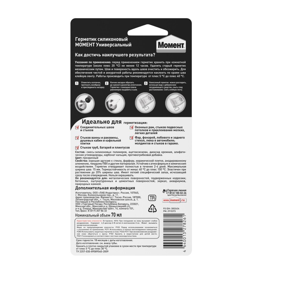 Купить Герметик Момент силикон. 70мл, универс. /прозр./ BL, к.3002434