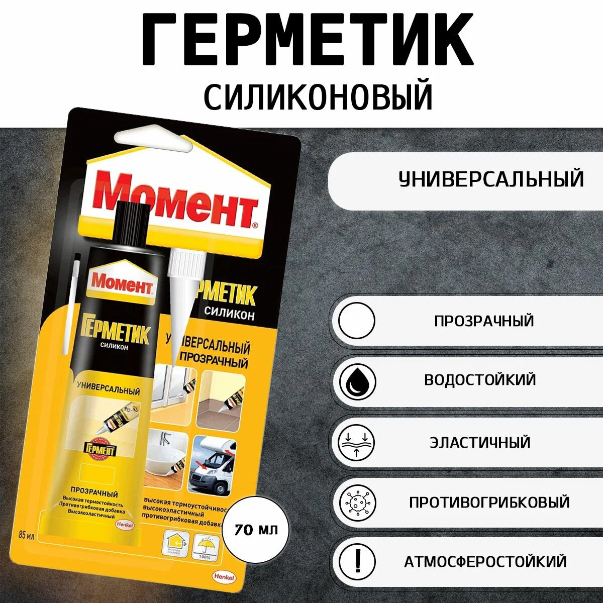 Герметик Момент силиконовый, универсальный, прозрачный (70 мл)
