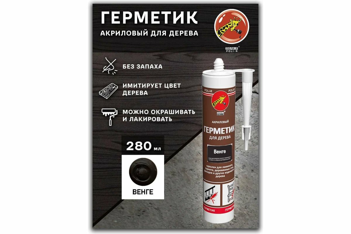 Герметик акриловый для дерева Poli-r, 280мл, цвет "бук", основа силикон