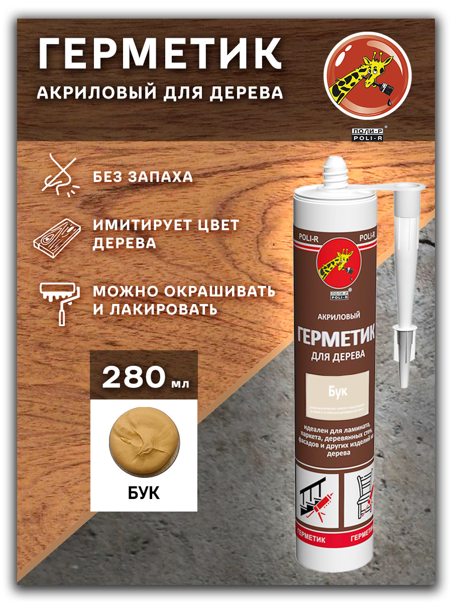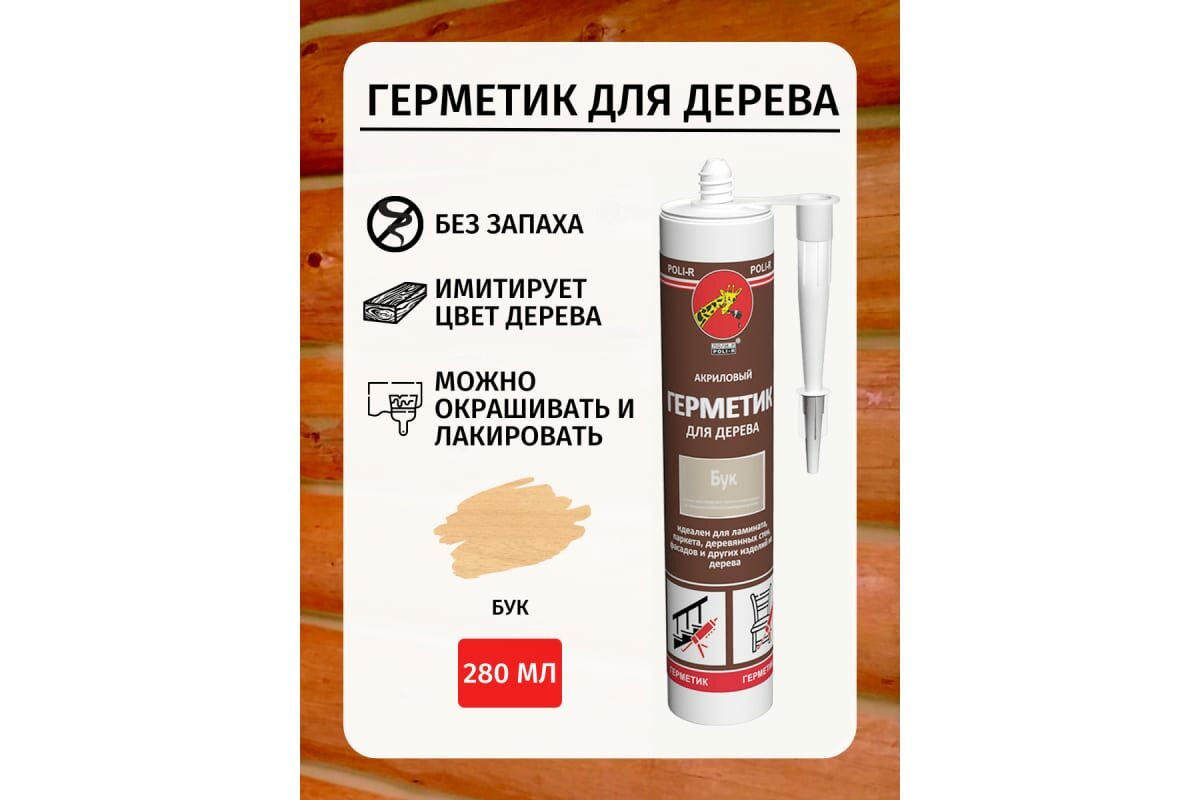 Купить Герметик акриловый для дерева Poli-r, 280мл, цвет "бук", основа силикон