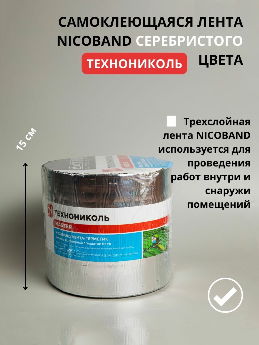 Технониколь Nicoband Лента самоклеющаяся герметизирующая (серебристый, 15см/10м)