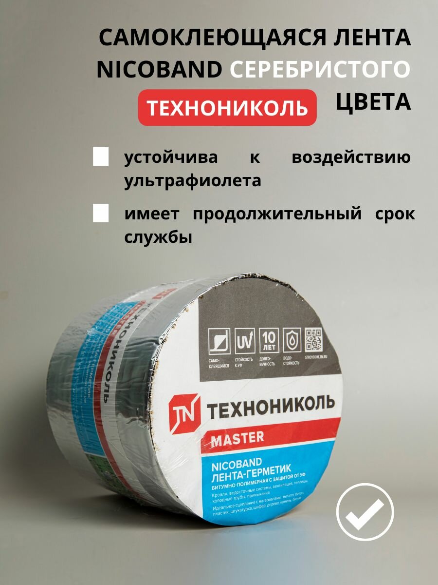 Технониколь Никобенд гидроизоляционная лента 10см х 10м серебристый / NICOBAND гидроизоляционная лента-герметик 10см х 10м серебристая