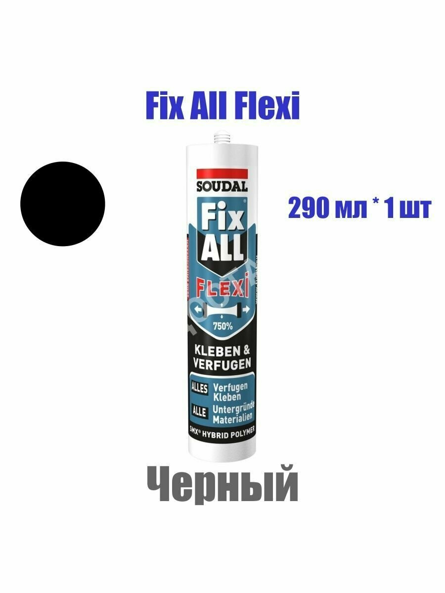 Монтажный клей-герметик Soudal Fix All Flexi. Высокопрочный, санитарный, МС-полимерный герметик, черный, 290 мл