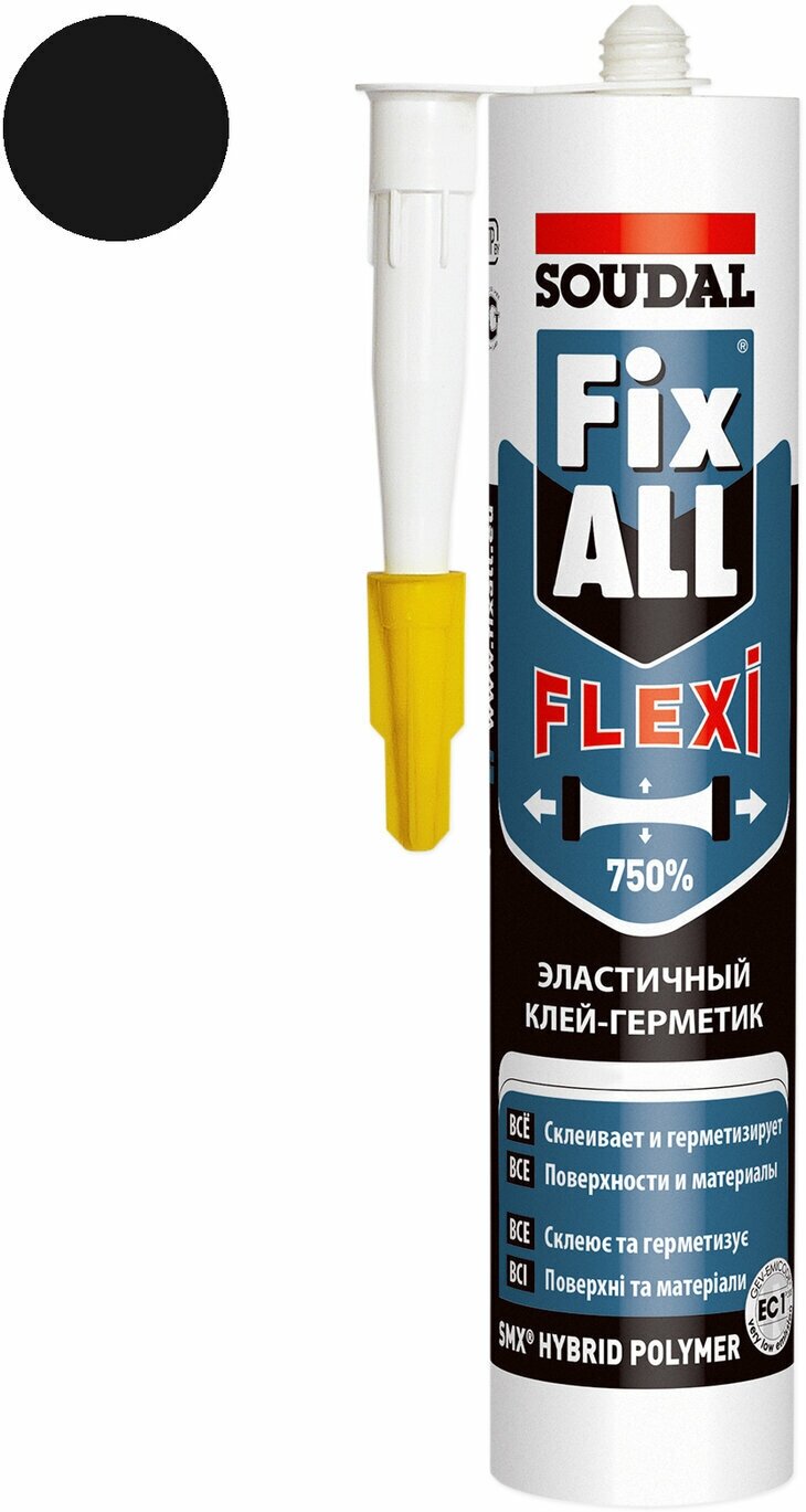 Купить Монтажный клей-герметик Soudal Fix All Flexi. Высокопрочный, санитарный, МС-полимерный герметик, черный, 290 мл