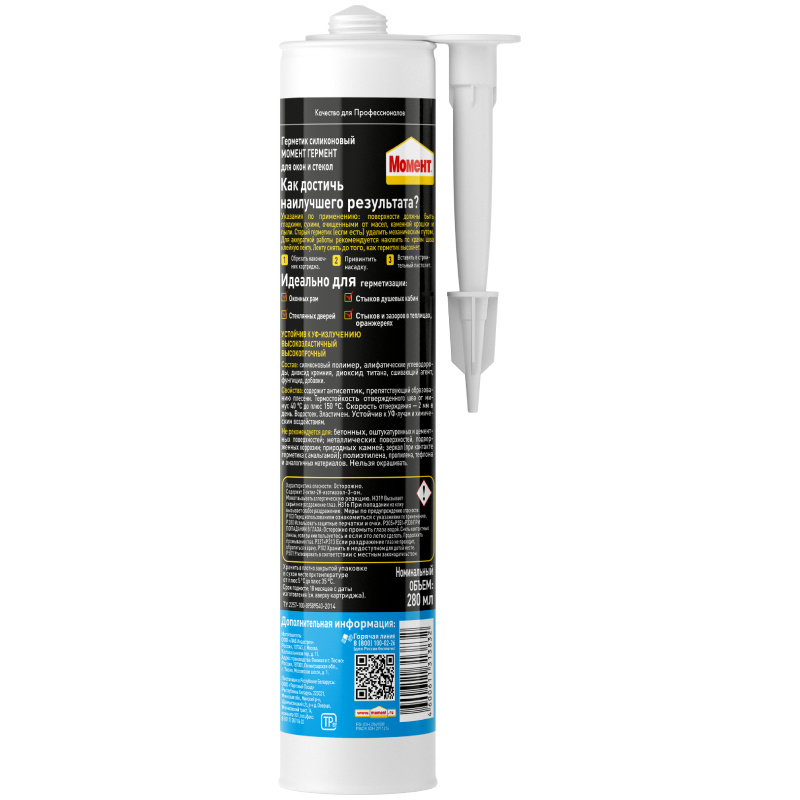 Момент Для окон и стекол герметик белый (0,28л) / MOMENT Для окон и стекол герметик cиликоновый белый (280мл)