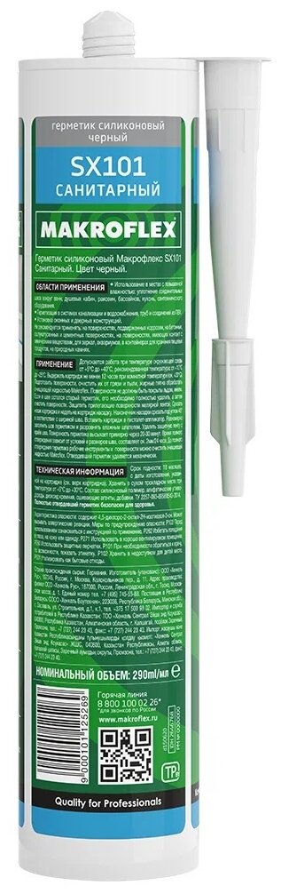 Силиконовый санитарный герметик Makroflex SX101 3001533, 290 мл, черный