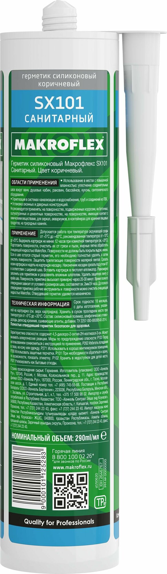 Макрофлекс SX101 герметик Санитарный коричневый (0,29л) / MAKROFLEX герметик Санитарный силиконовый SX101 коричневый (0,29л)