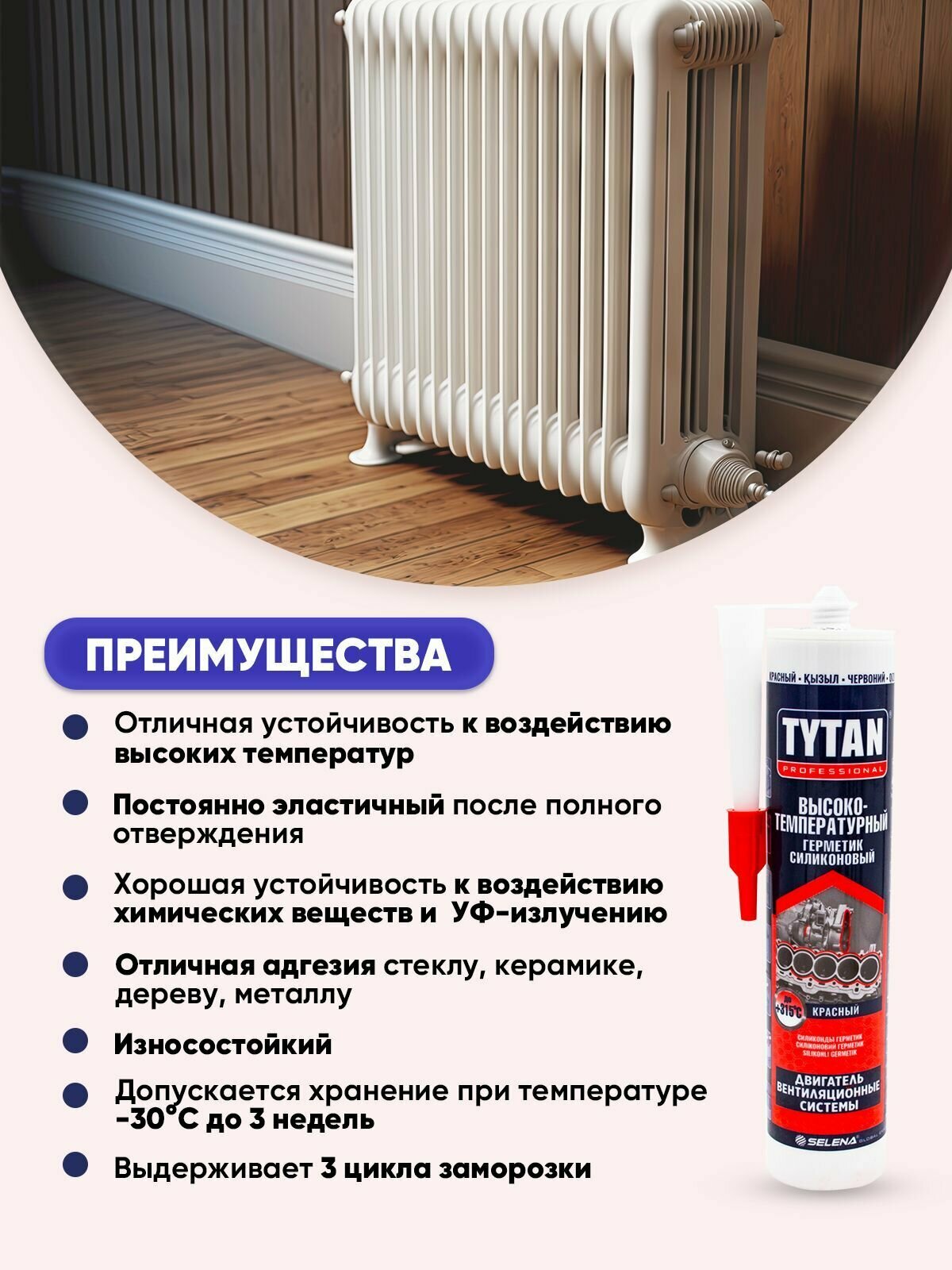 Герметик силиконовый высокотемпературный красный 280 МЛ "TYTAN PROFESSIONAL