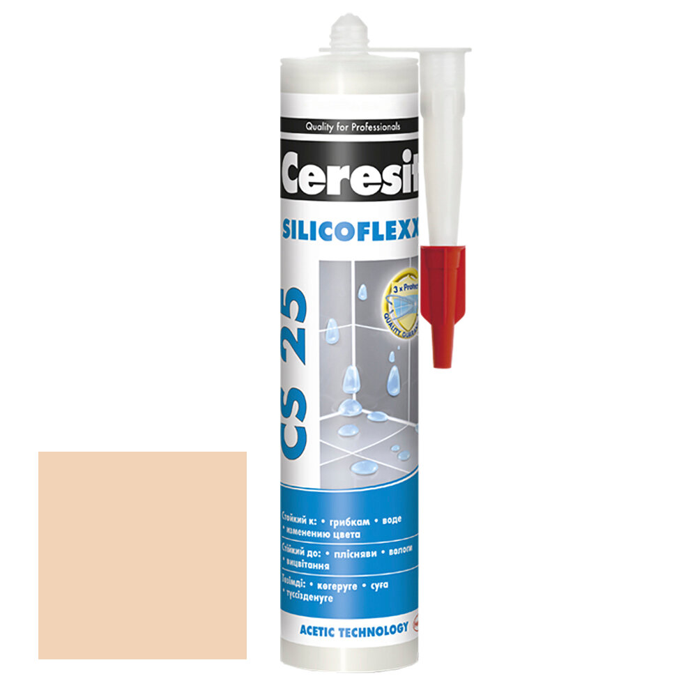 Силиконовая затирка-герметик Церезит CS 25, цвет Багама беж, 280 мл