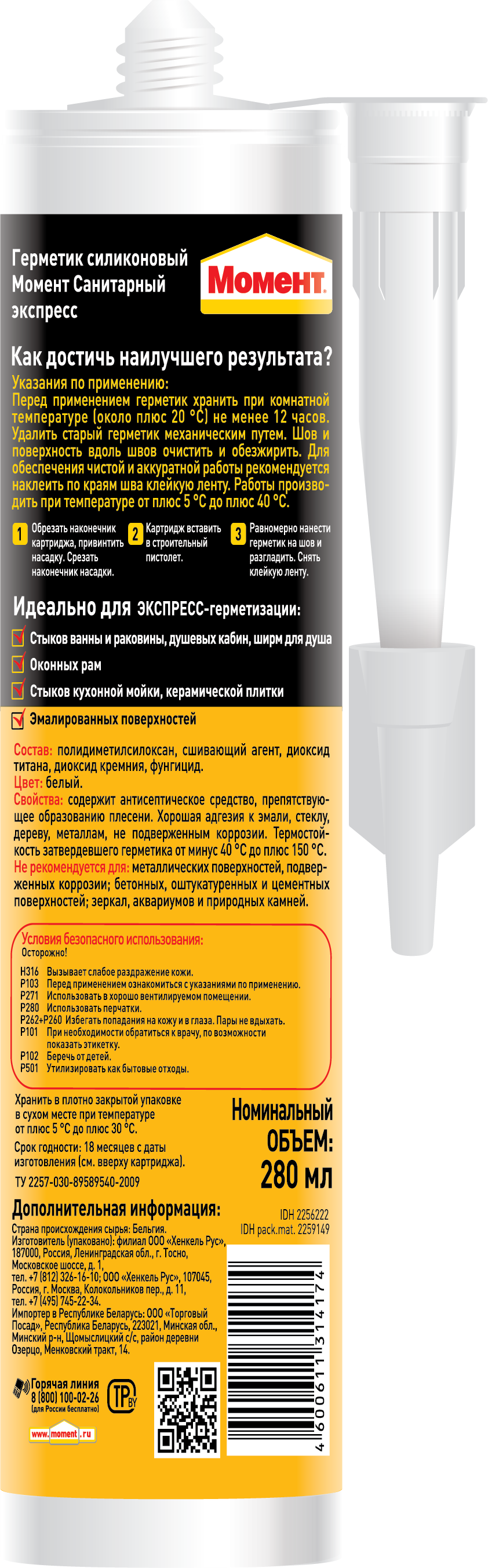 Хенкель Герметик Момент Силиконовый Санитарный Экспресс (280мл) картридж (белый)