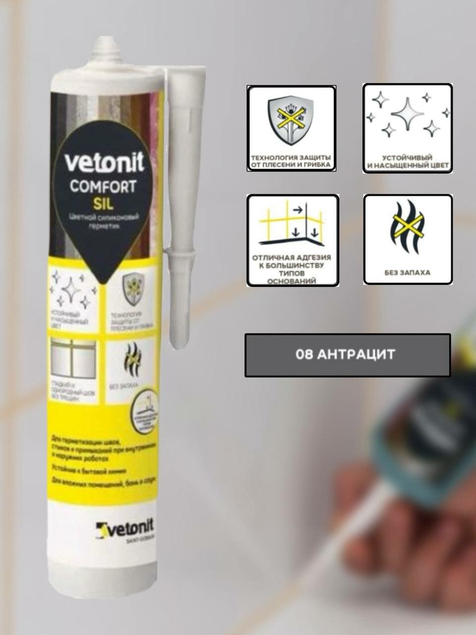 Цветной силиконовый герметик Vetonit comfort sil 08 антрацит (чёрый), 280 мл
