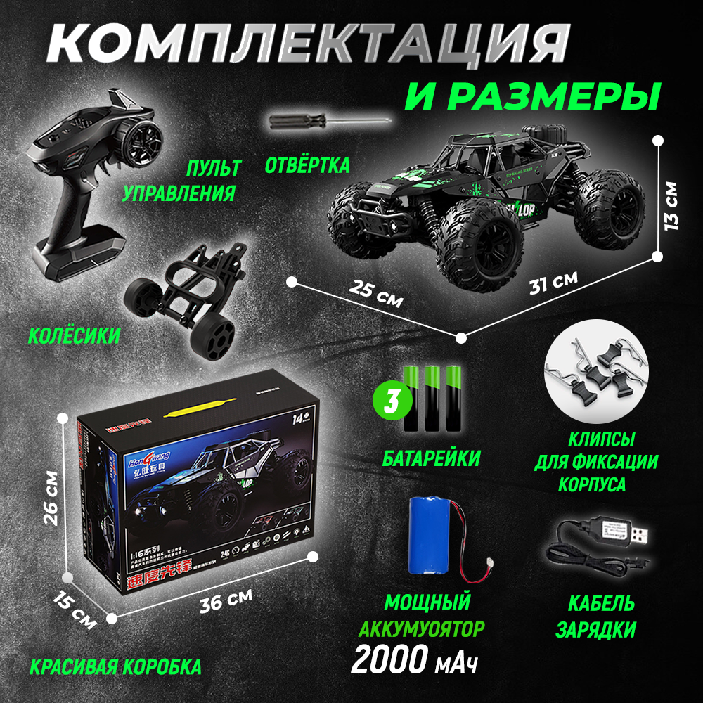| Особенности | батарейки в комплекте / для дрифта / для улицы / пульт ДУ в комплекте / съемный аккумулятор в комплекте / трюковая |