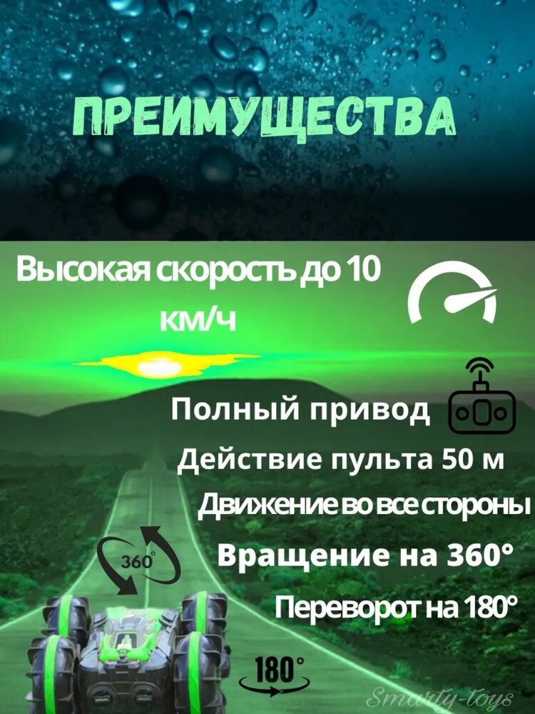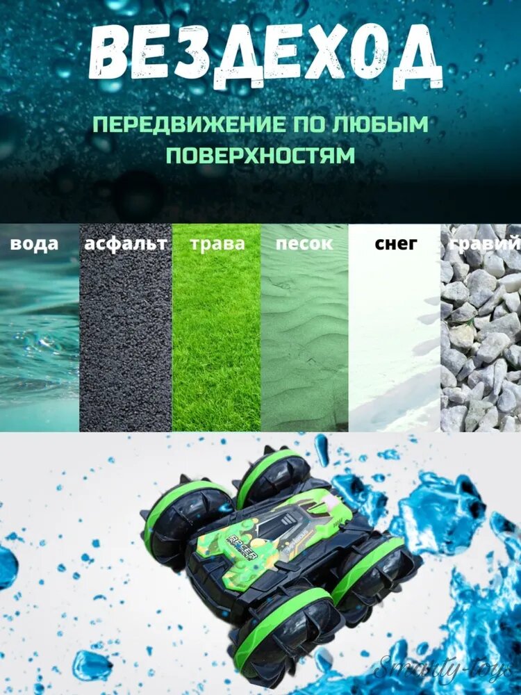 Ниже Вы можете прочитать отзывы на Машинка амфибия на радиоуправлении, машина на пульте управления перевертыш с аккумулятором Car Amphibiou, полный привод, Зеленая, ознакомится с подробными характеристиками, посмотреть интересные обзоры и фотографии на Машинка амфибия на радиоуправлении, машина на пульте управления перевертыш с аккумулятором Car Amphibiou, полный привод, Зеленая.