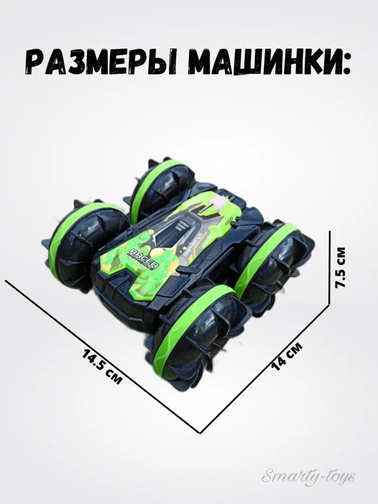 Купить Машинка амфибия на радиоуправлении, машина на пульте управления перевертыш с аккумулятором Car Amphibiou, полный привод, Зеленая