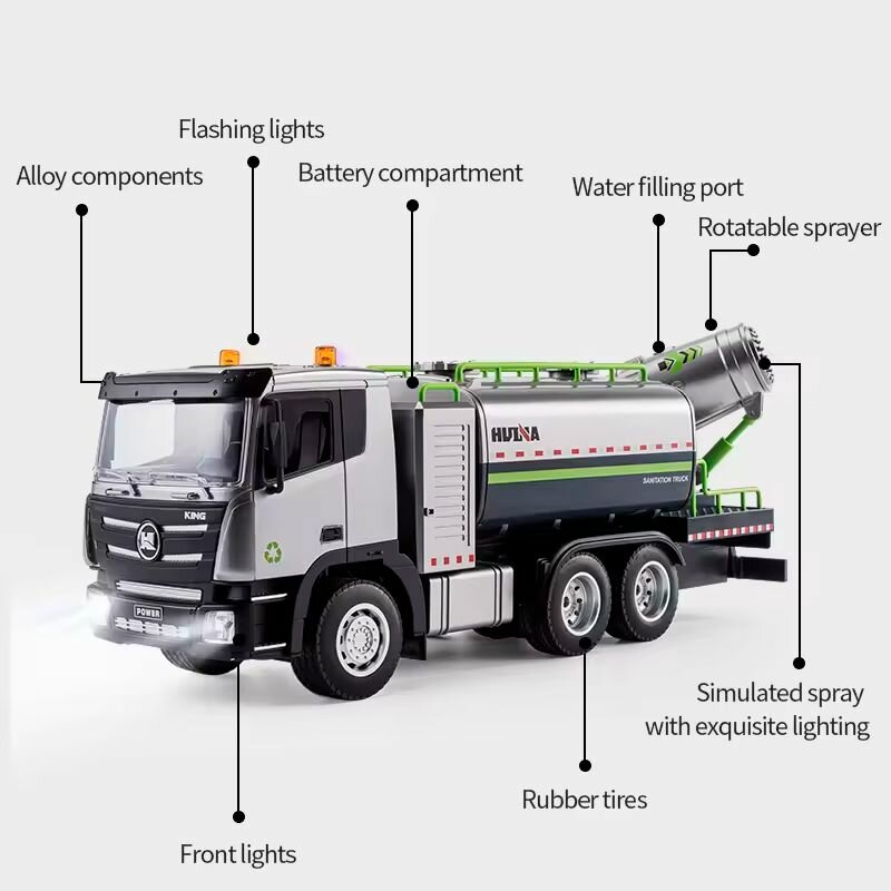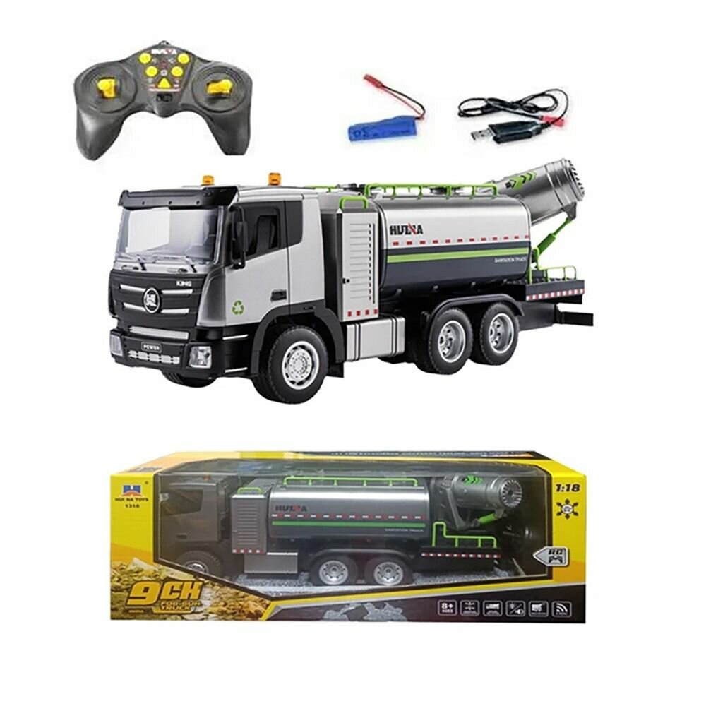 Купить Радиоуправляемый грузовик Huina с цистерной и распылителем воды (свет, звук, пар, 1:18) - HN1316