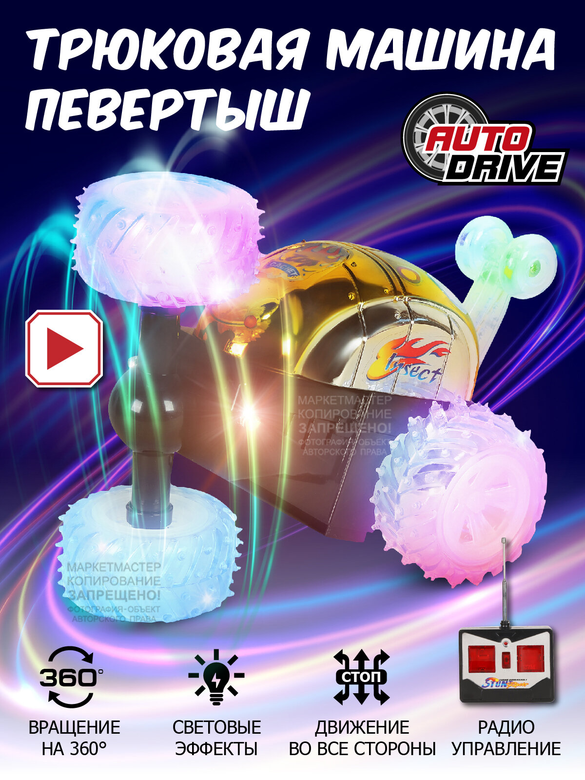 Купить Машинка детская на радиоуправлении AUTODRIVE Перевертыш, трюковая, пульт управления, на батарейках, светящиеся колеса, JB1168169