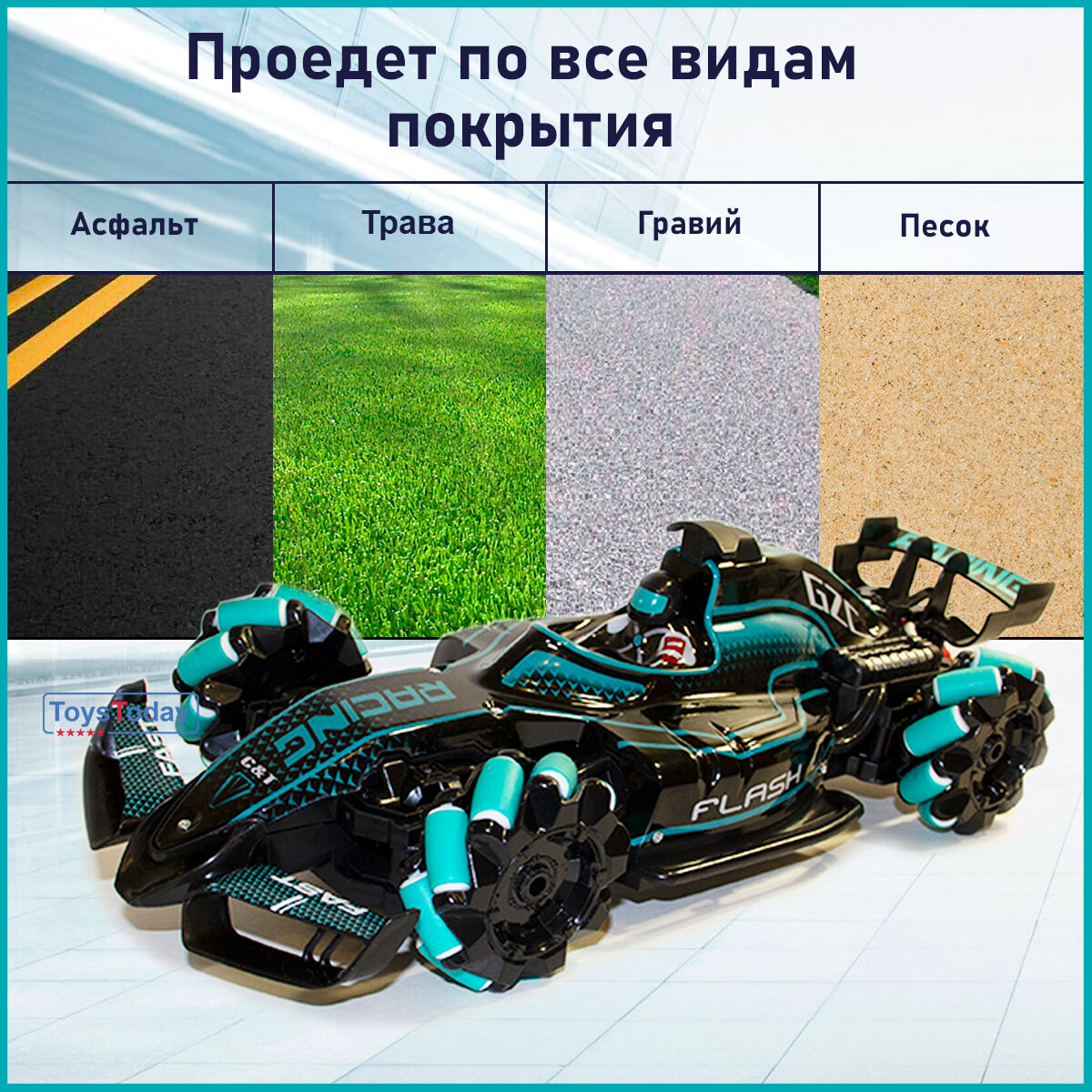 Машинка на пульте управления. С подсветкой "дыма". Детская гоночная машина на радиоуправлении. Управление жестами одной рукой. Spray Car Цвет: голубой