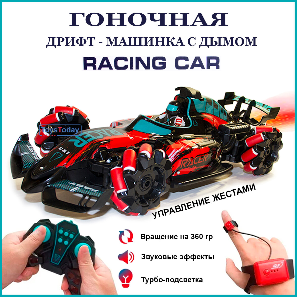Купить Машинка на пульте управления. С подсветкой "дыма". Детская гоночная машина на радиоуправлении. Управление жестами одной рукой. Цвет: красный