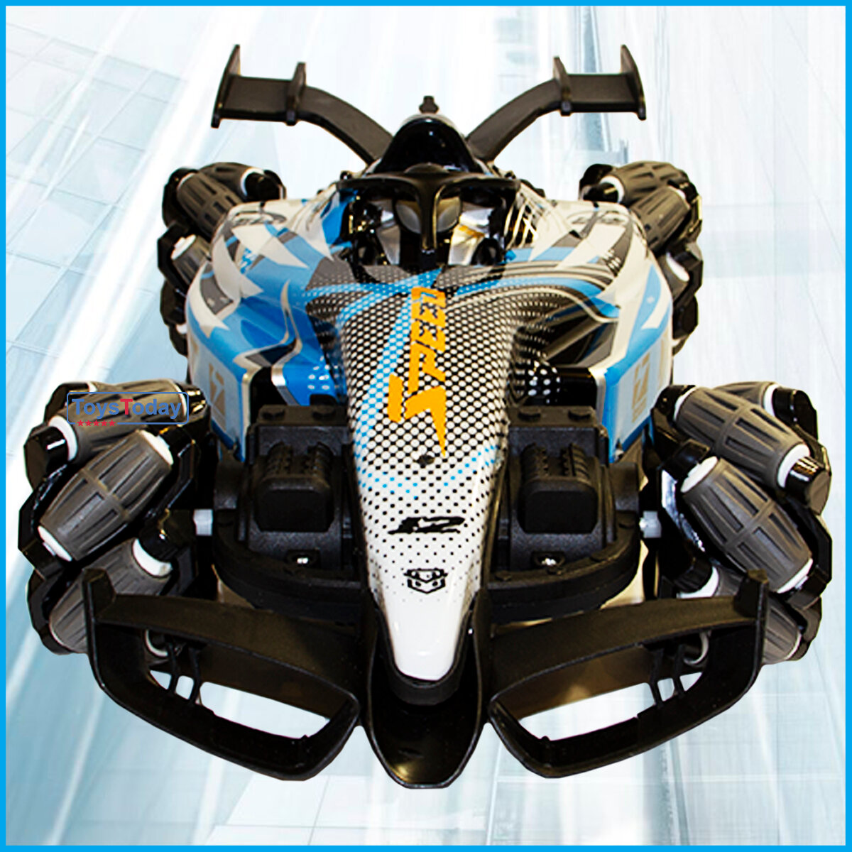 Радиоуправляемая гоночная машинка. С подсветкой "дыма". Управление жестами, голубая