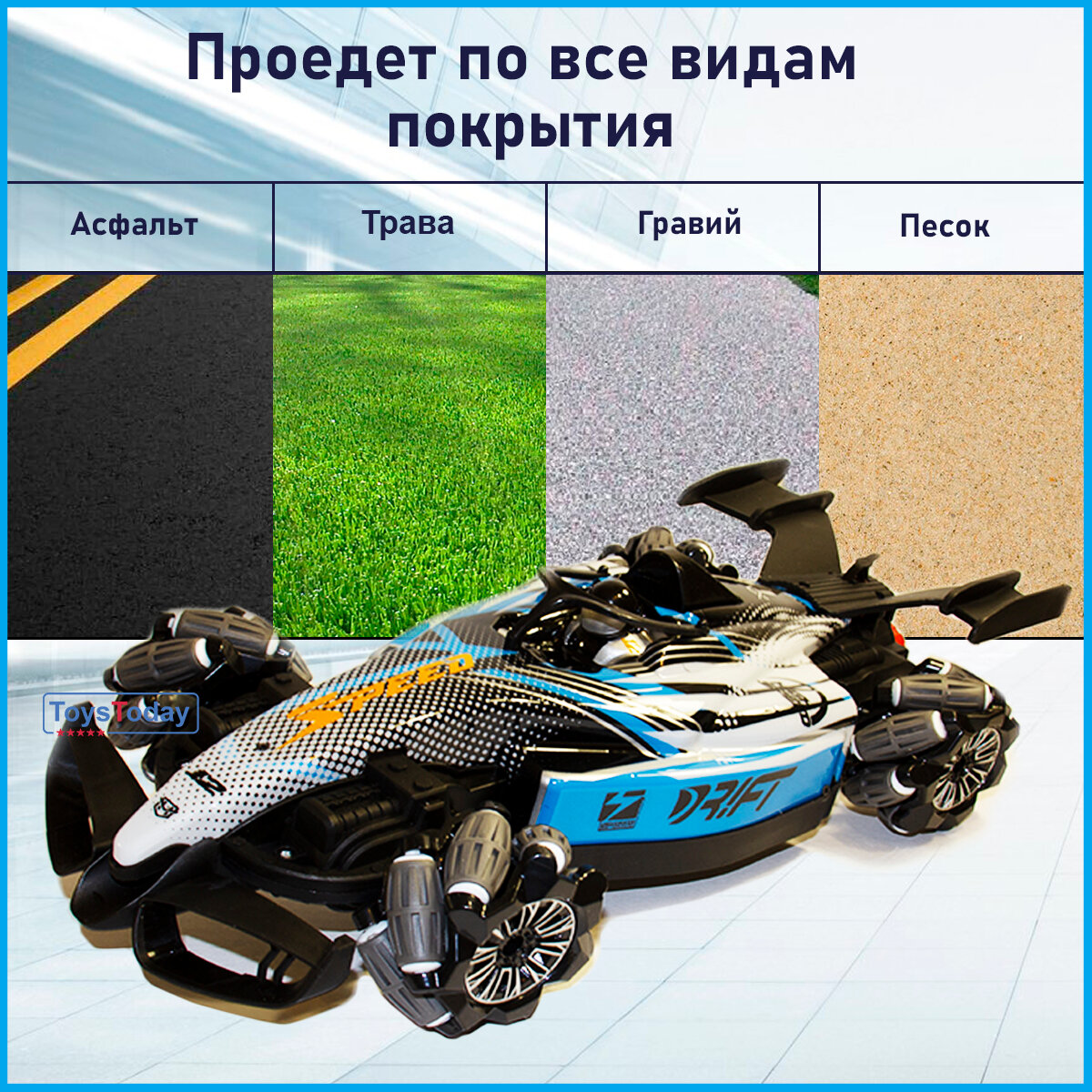 СохранитьМашинка на пульте управления. С подсветкой "дыма". Детская гоночная машина на радиоуправлении. Управление жестами одной рукой. Spray Car Цвет: голубой интересное: