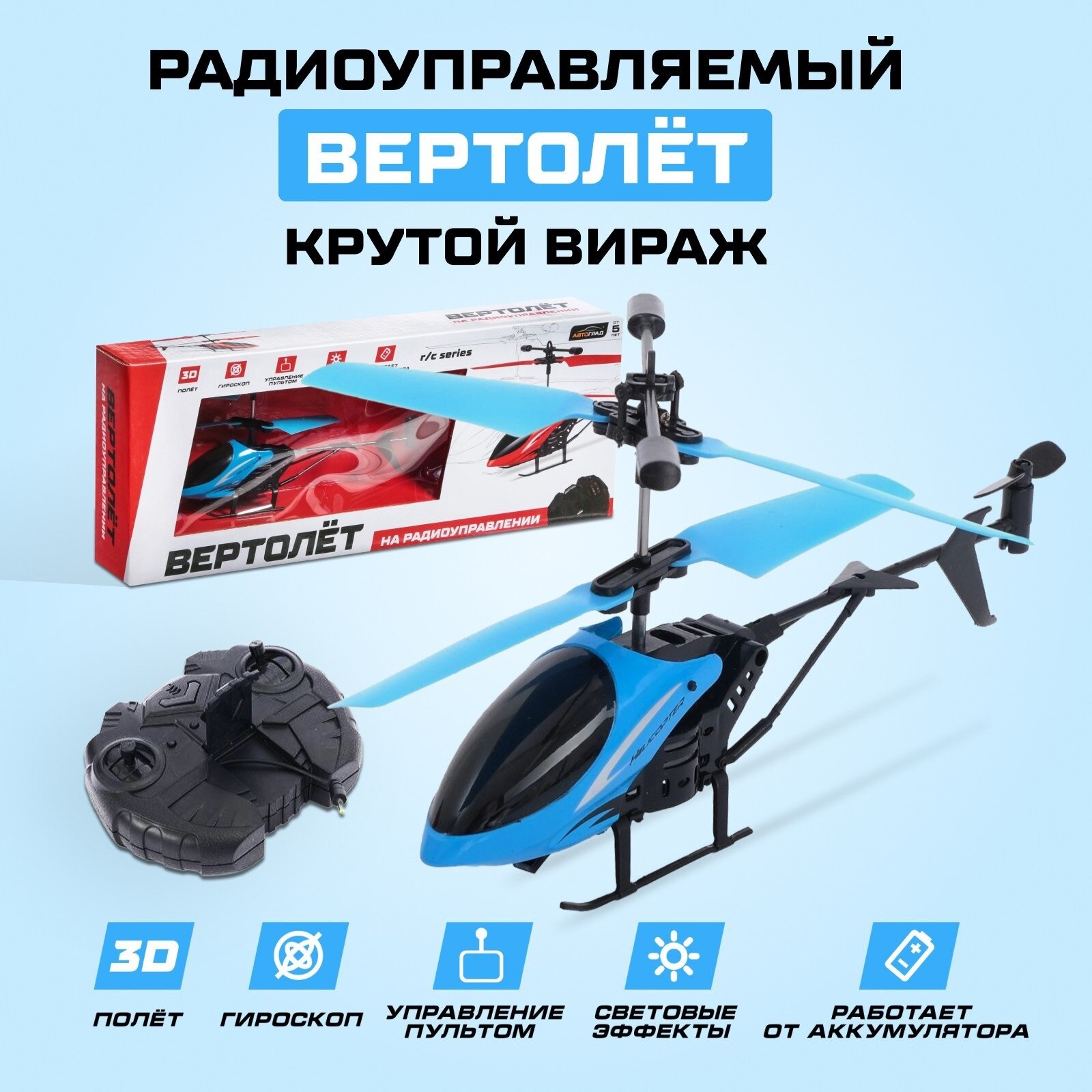 | Комплектация | Вертолёт радиоуправляемый в голубом цвете |