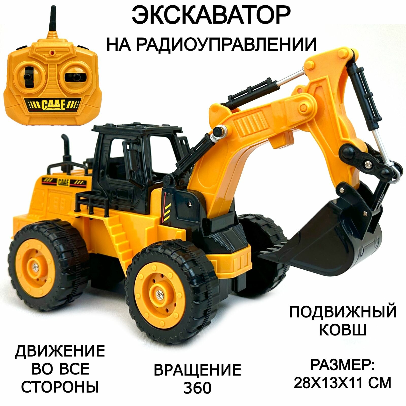 Экскаватор на радиоуправлении, игрушка движется во всех направлениях, CAAE, 1:32, вращение 360, подвижный ковш, бульдозер