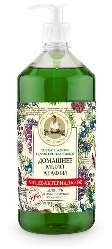 Рецепты бабушки Агафьи Мыло домашнее жидкое Кедрово-можжевеловое, антибактериальное, 1000 мл