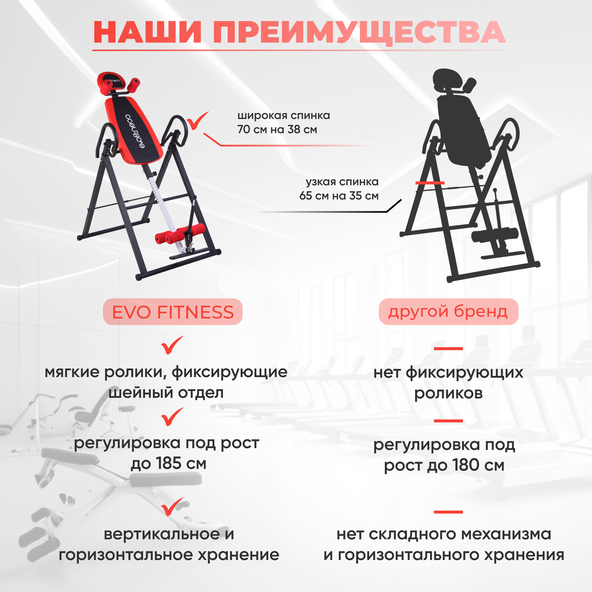 Инверсионный стол EVO FITNESS Kinetic red интересное: