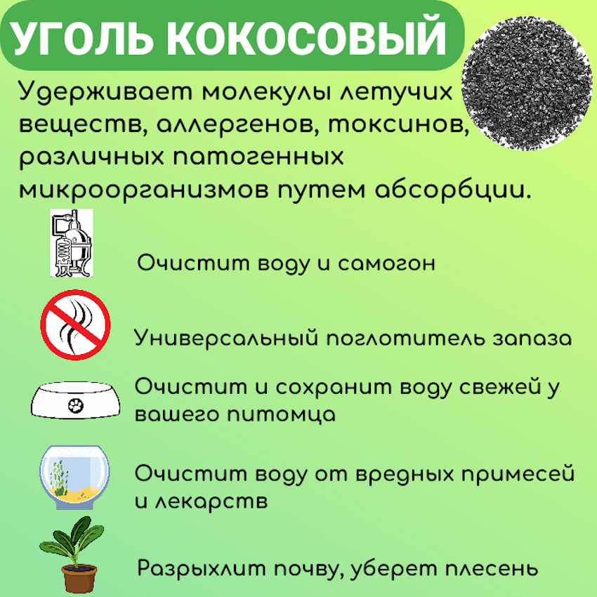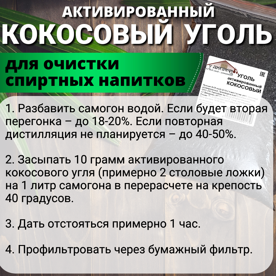 Уголь активированный кокосовый "У Дмитрича" для очистки воды, самогона, воздуха 1000гр.