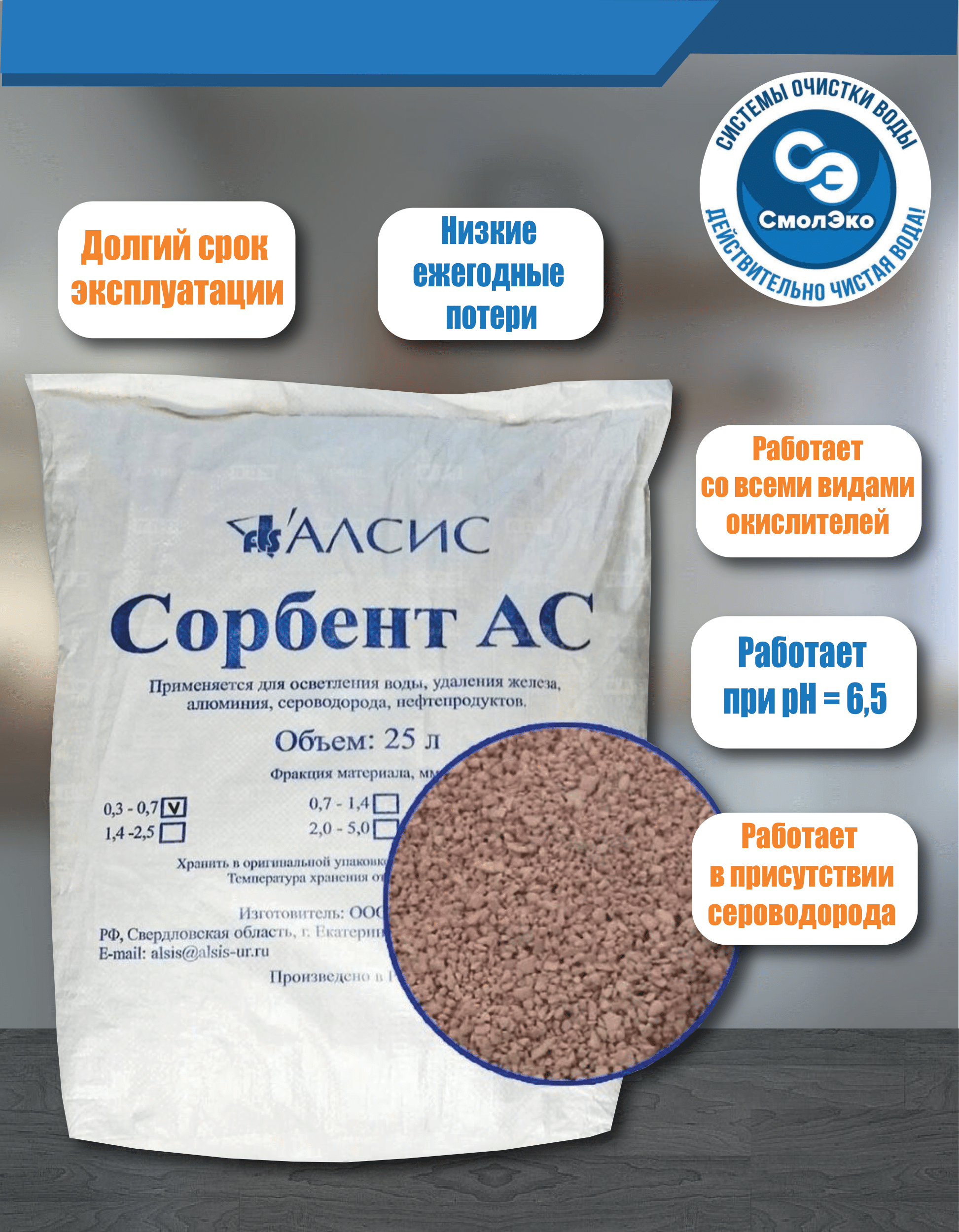| Дополнительная информация | Долгий срок эксплуатации с низкими ежегодными потерями, менее 2%; Самый легкий сорбент в Восточной Европе и СНГ |