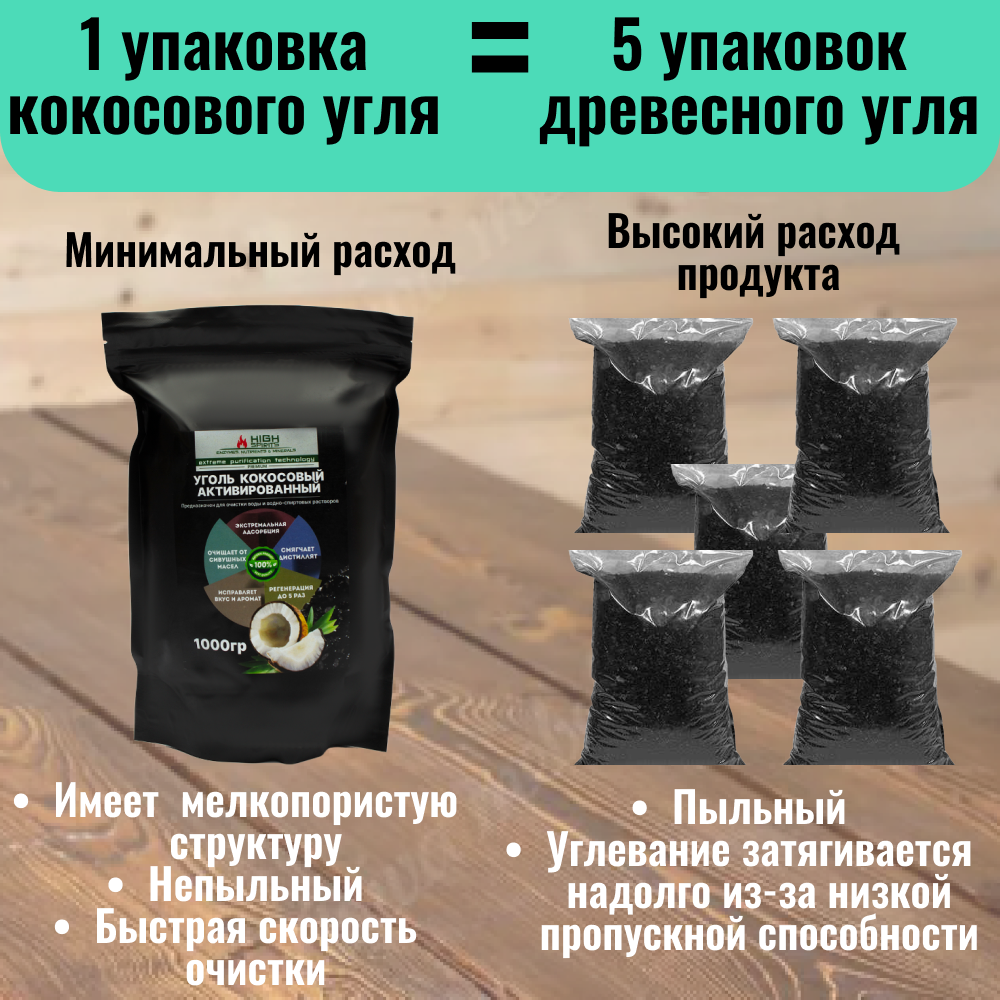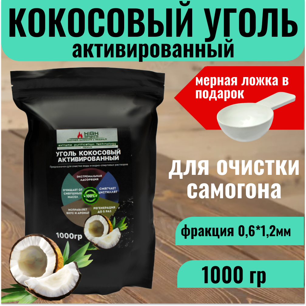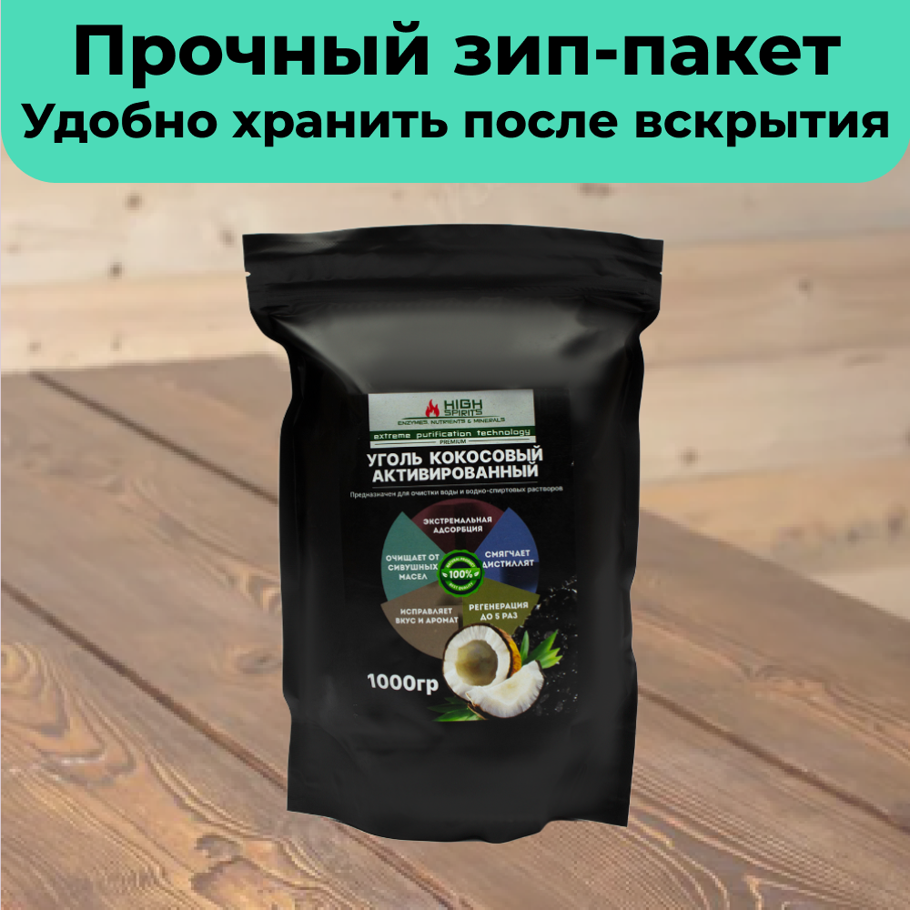 Уголь кокосовый 1кг HyperPure Carbon Premium активированный для очистки самогона, настойки, воды