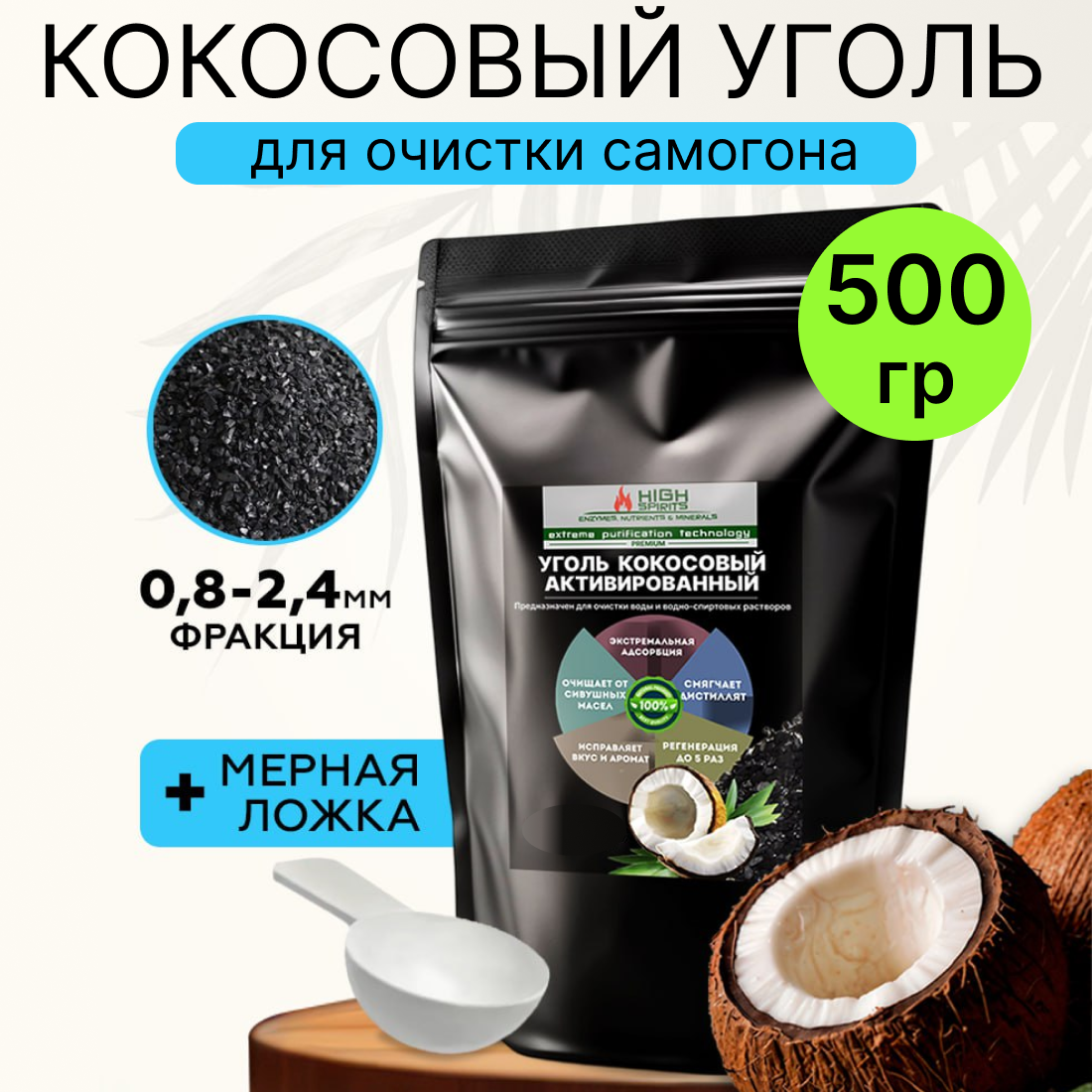 Купить Уголь кокосовый 500гр HyperPure Carbon Premium активированный для очистки самогона, настойки, воды