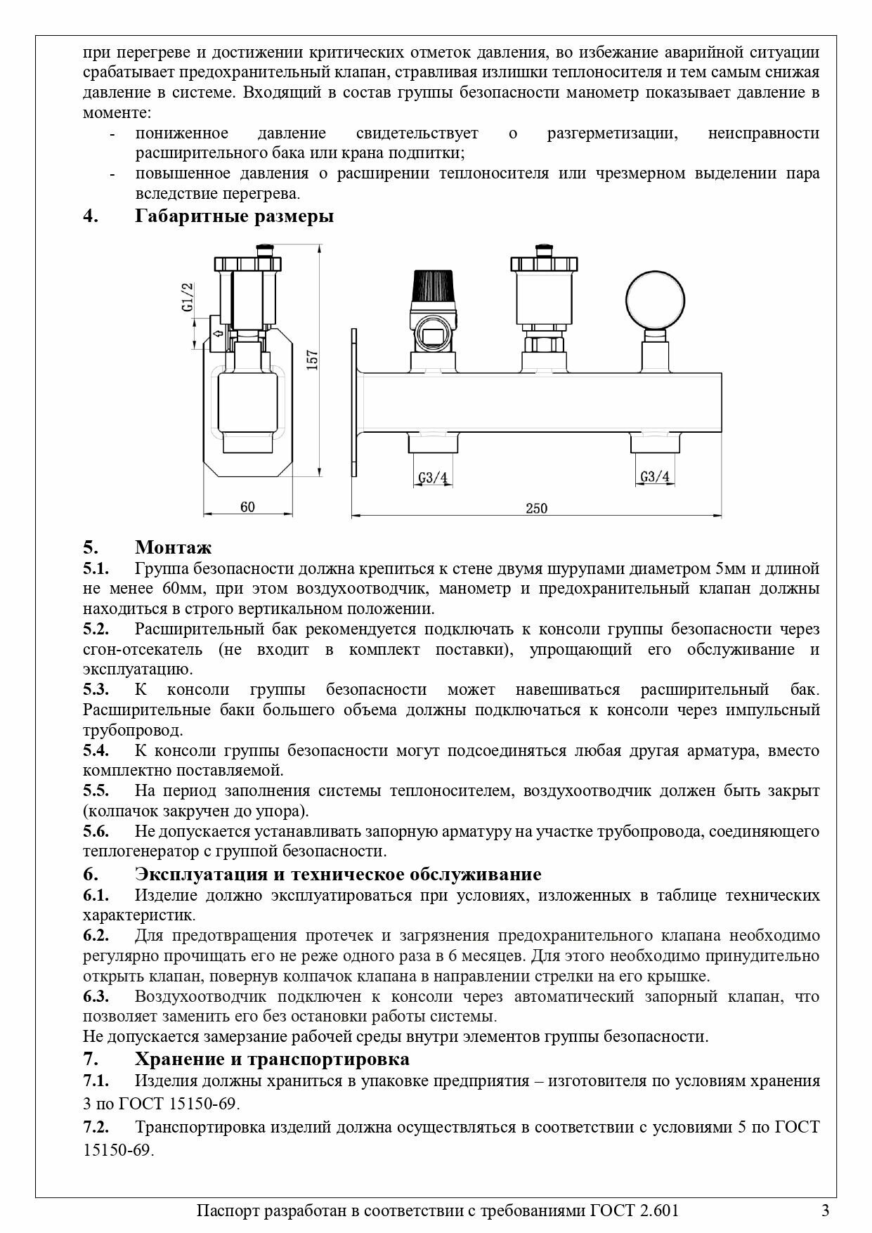 Группа безопасности 3 бар /латунная "классик" (с теплоизоляцией) VALFEX арт. VF.461.0.3P