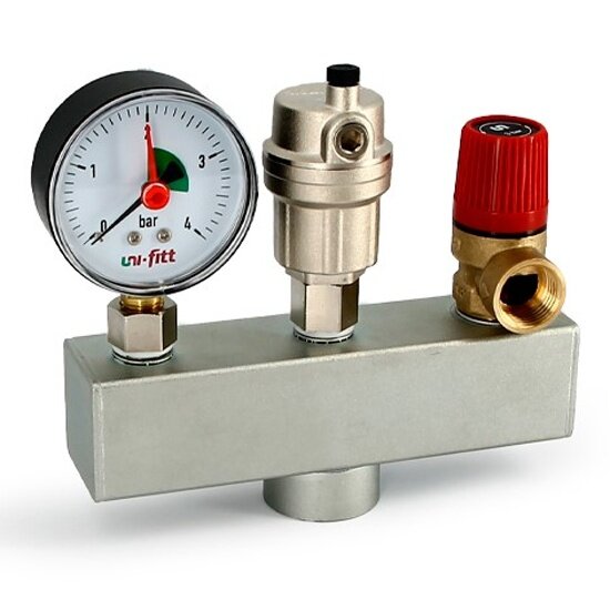 Купить Группа безопасности котла Uni-fitt до 50 кВт, 1", 3 бар, сталь