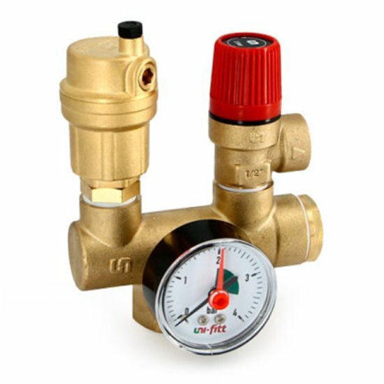 Купить Группа безопасности котла Uni-fitt Mini до 50 кВт, 1", 3 бар, латунь