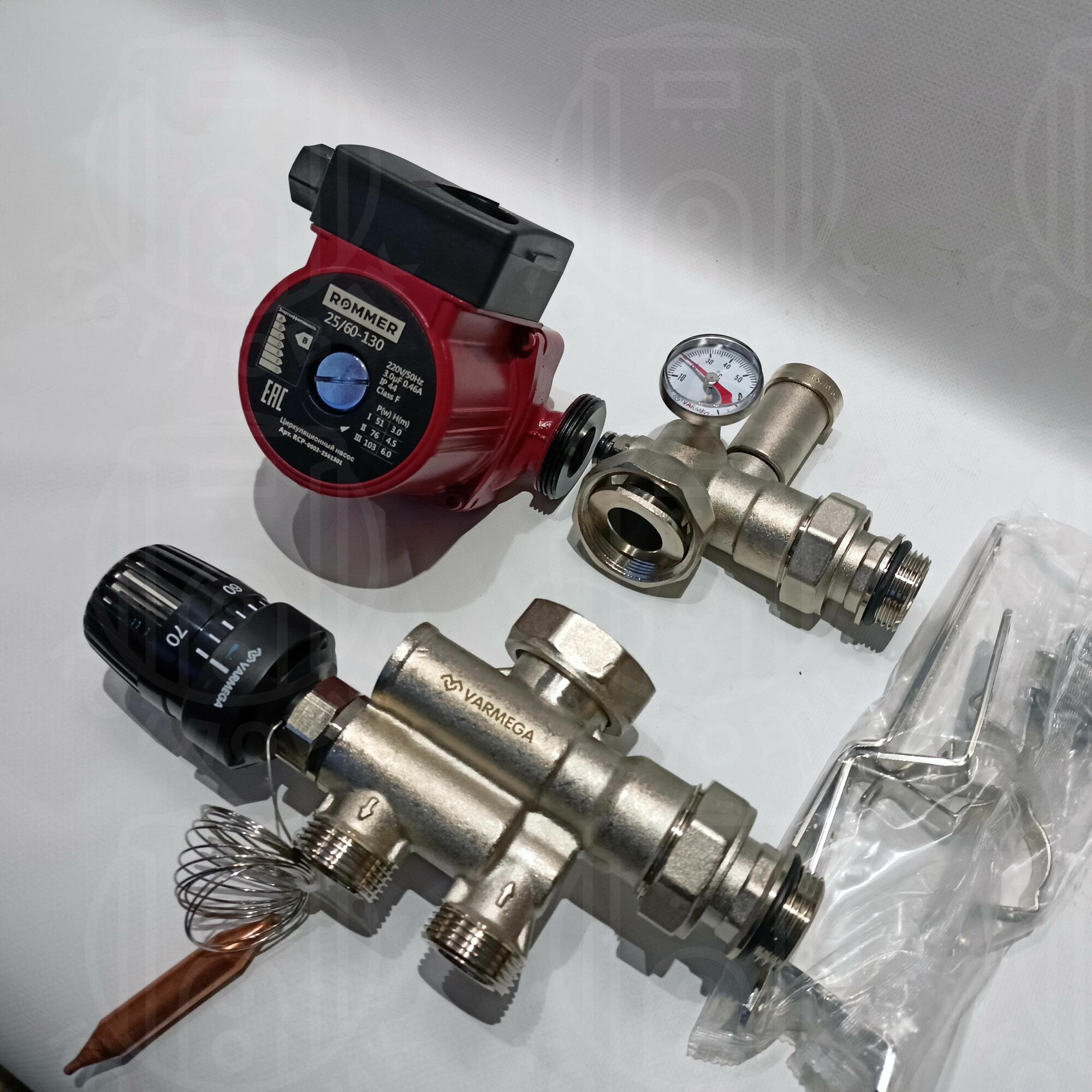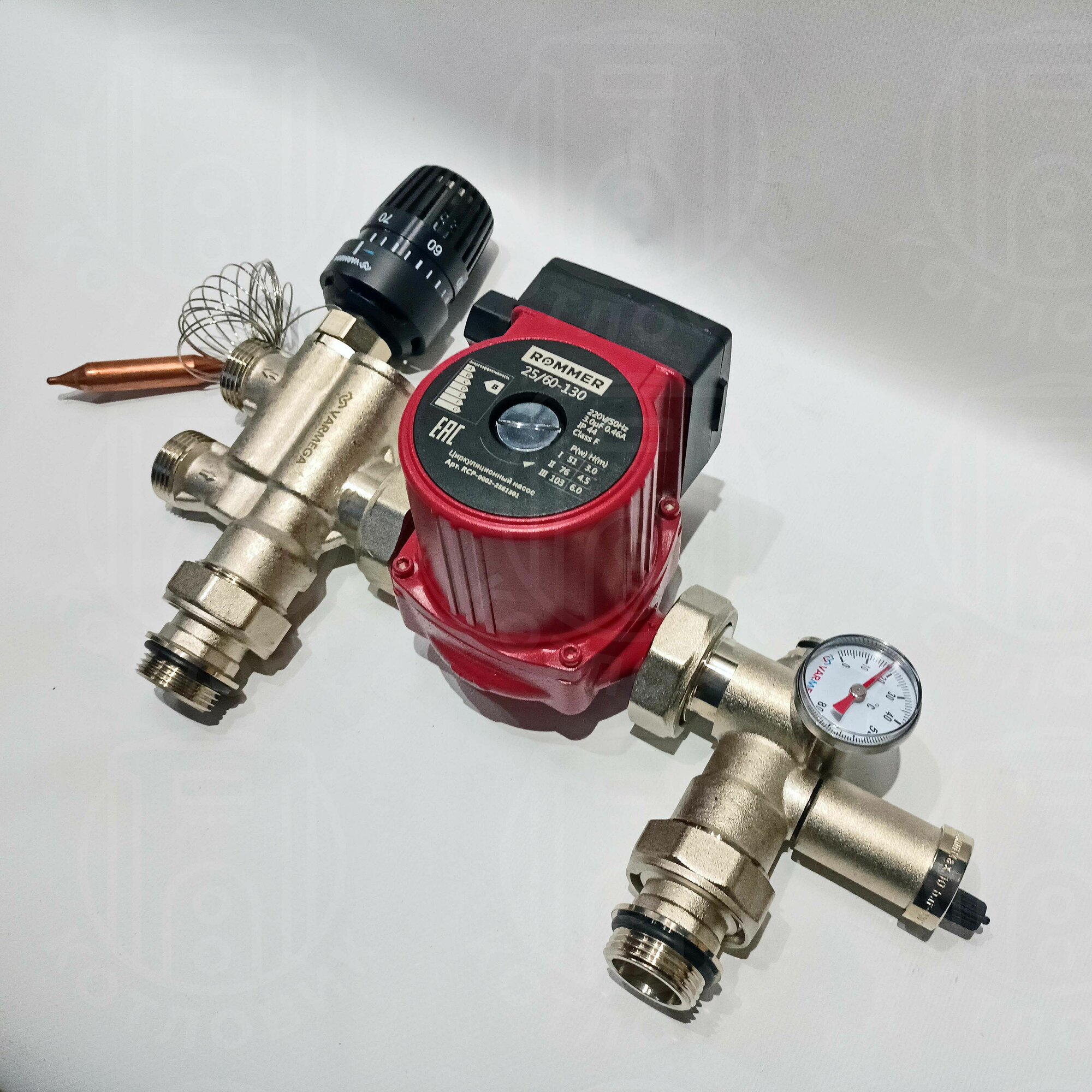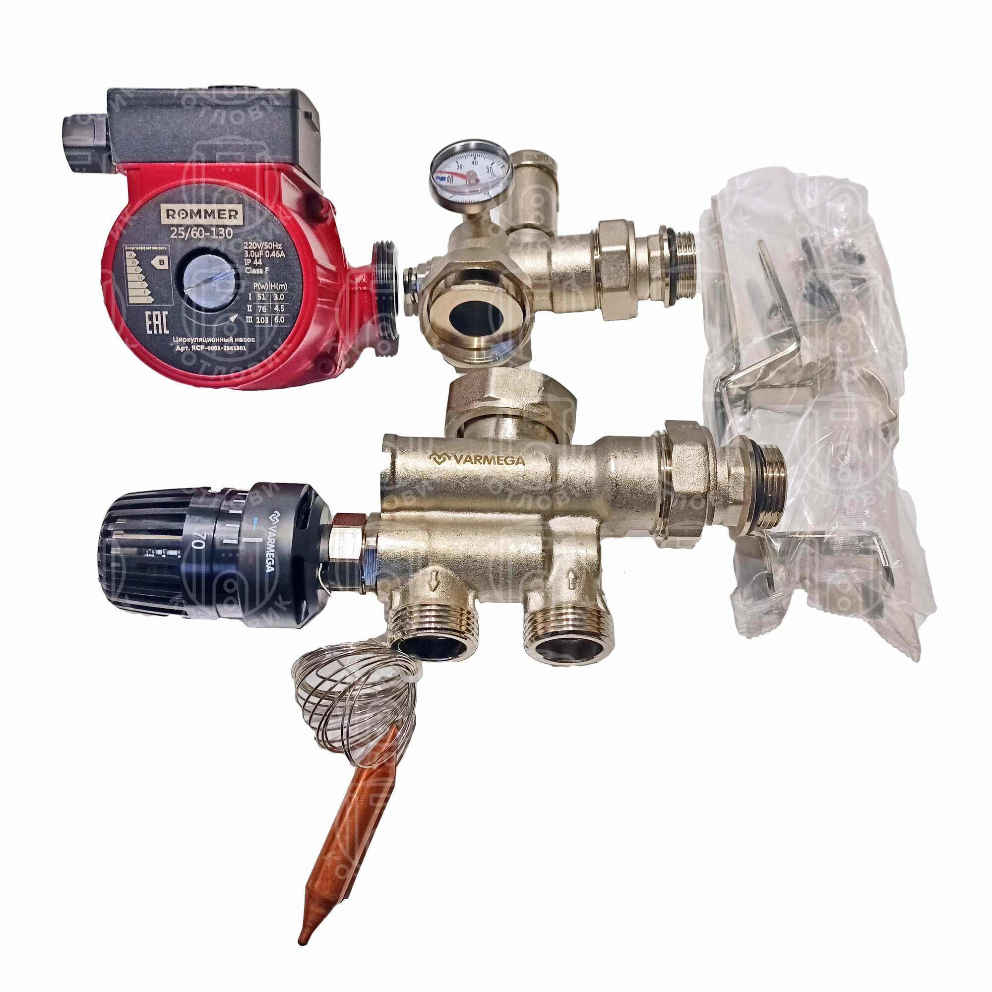 Комплект насосно-смесительный узел Varmega Varmix-TH VM15011, 1", с термоголовкой и выносным датчиком, c насоcом 25/60-130 интересное: