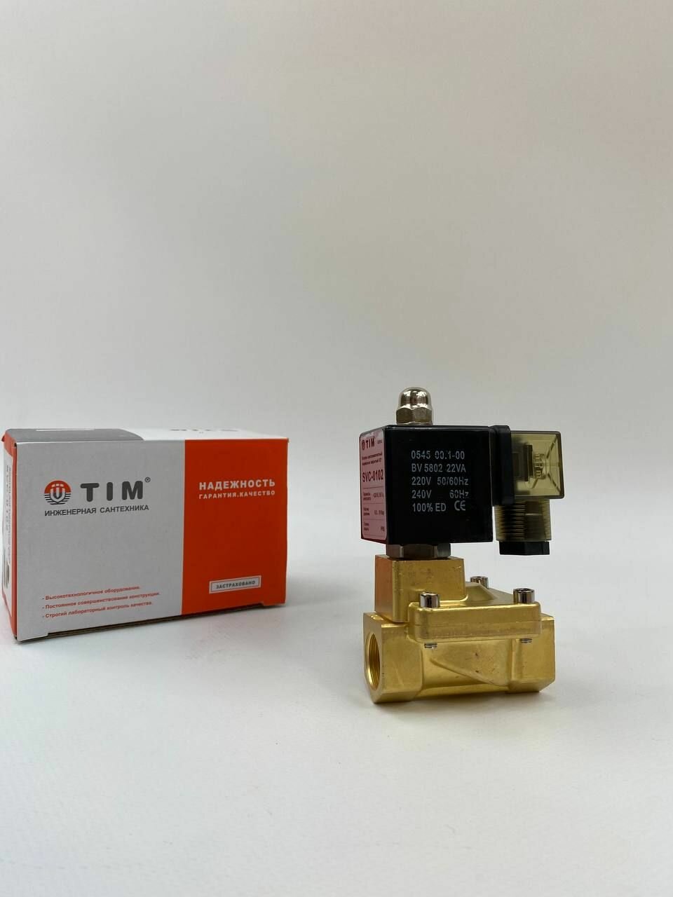 Клапан электромагнитный соленоидный нормально закрытый латунный 1/2"(ДУ15), 220В, TIM артикул SVC-0102 интересное:
