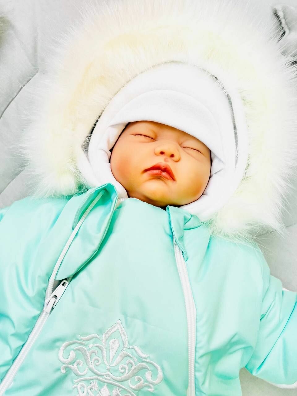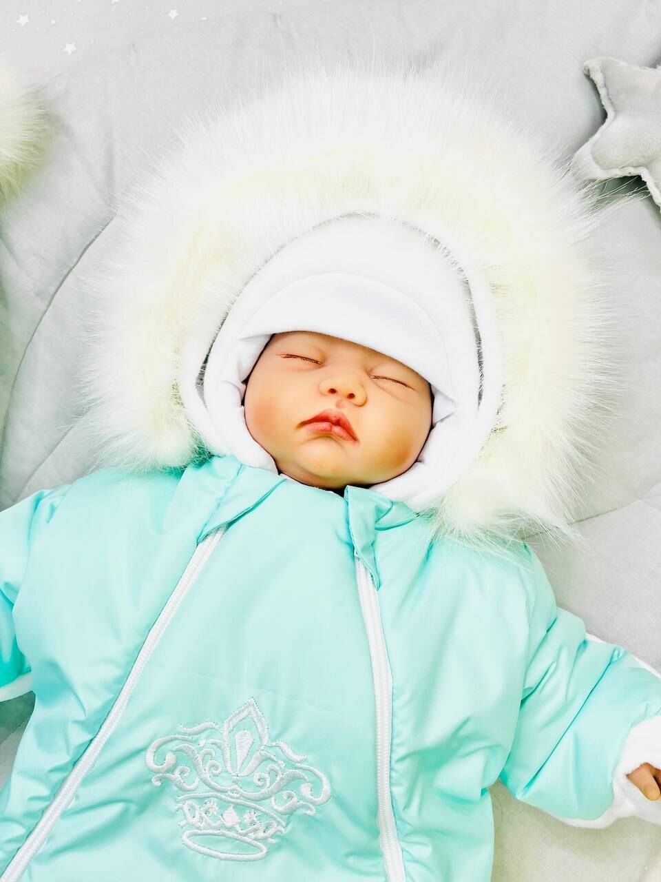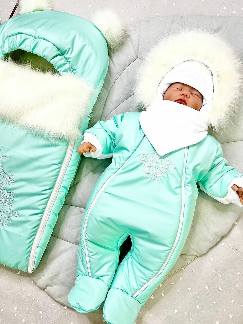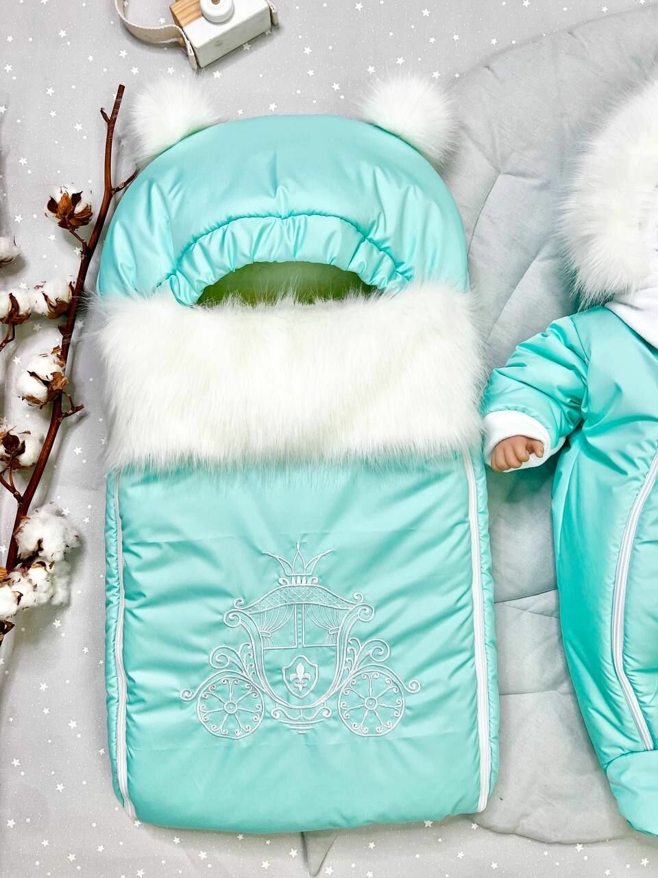 Комплект ALMeretskaya Пушок, универсальный, для новорожденных, на зиму, бирюзовый