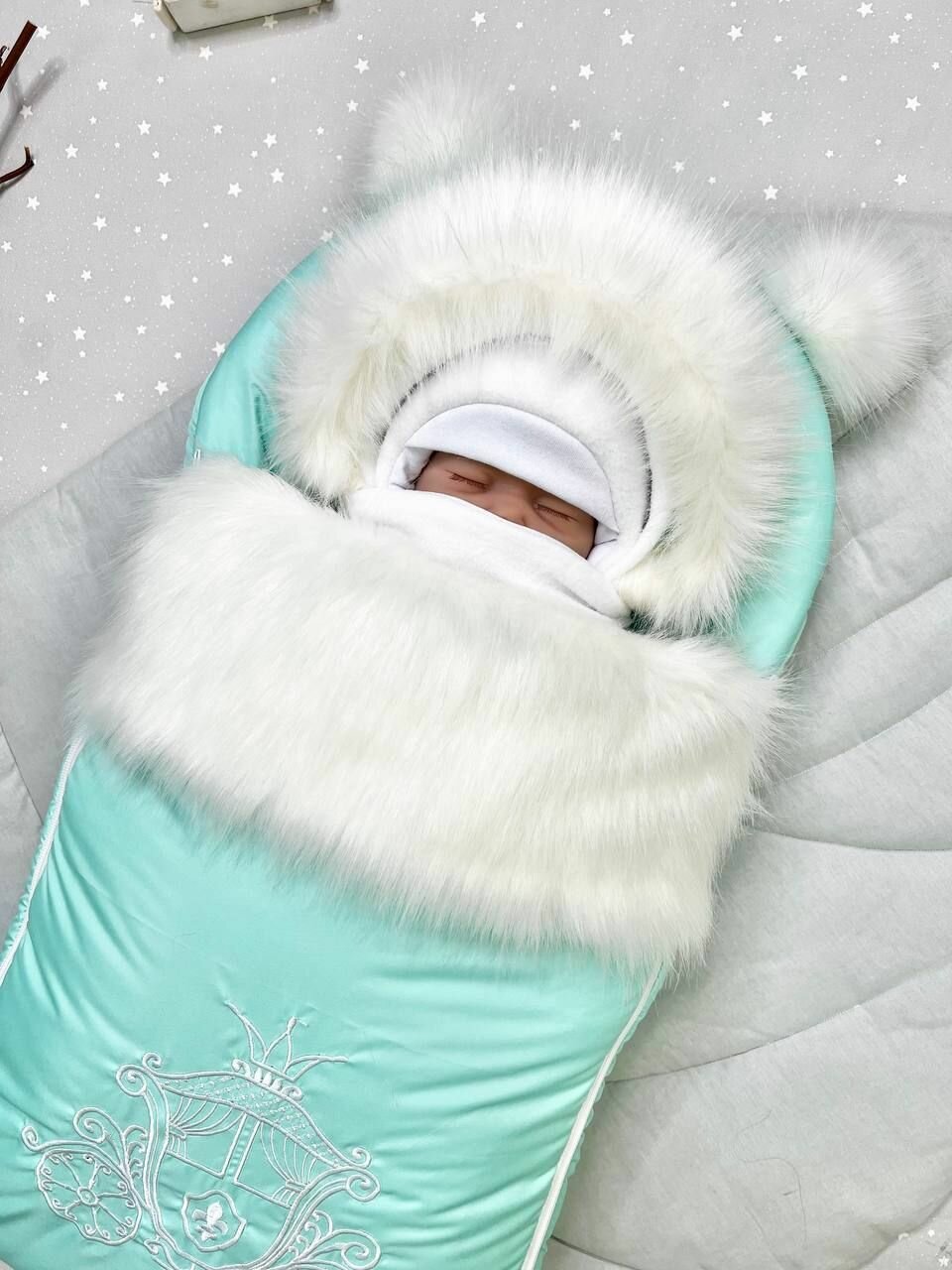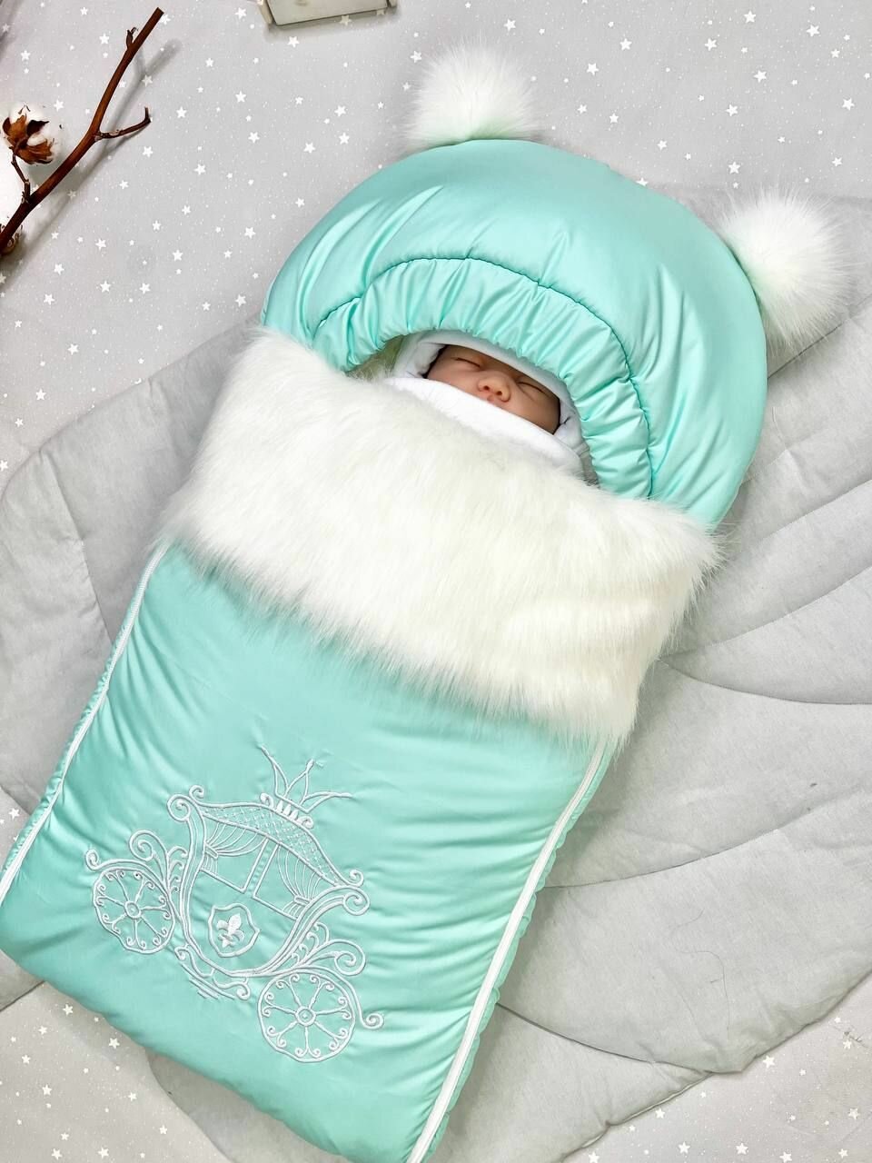 Конверт на выписку ALMeretskaya "Пушок", для новорожденных, зимний, голубой