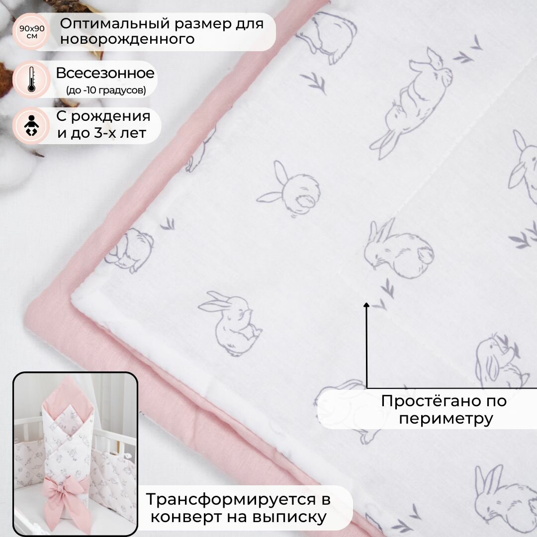 Купить Конверт на выписку, одеяло для новорожденных в кроватку "Кролики" с розовым