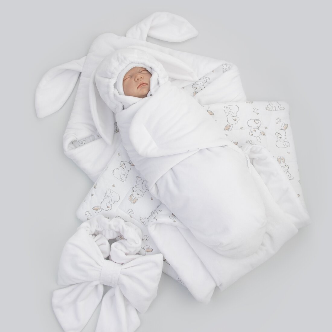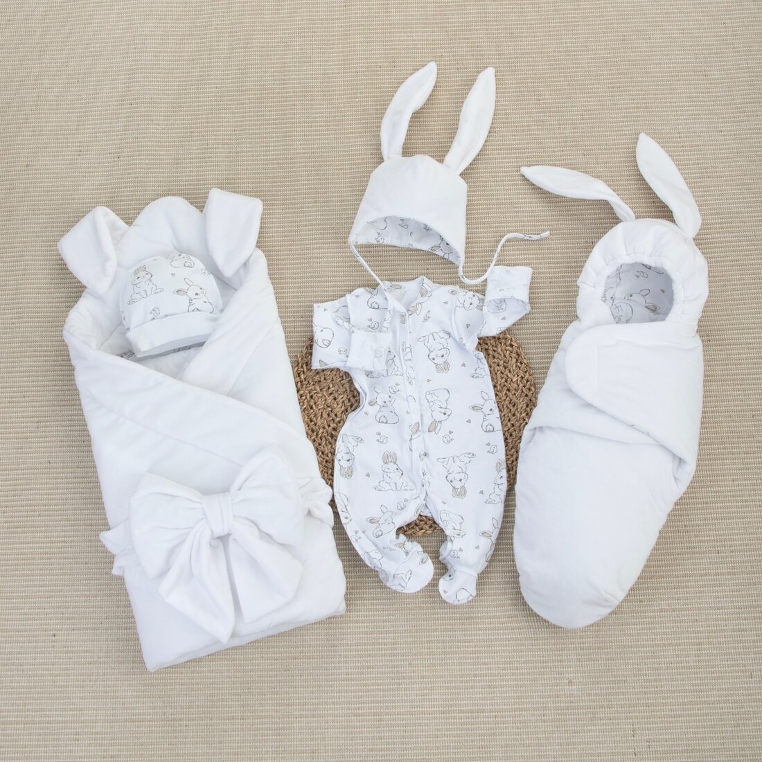 Комплект на выписку 6 предметов "Кроля", зимний, белый интересное: