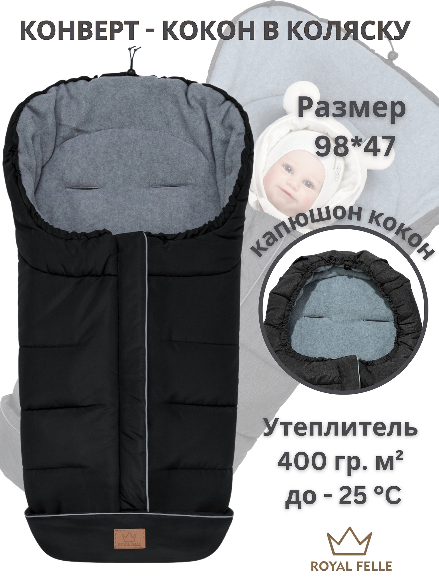 СохранитьКонверт в коляску для новорожденных осень зима - Royal Felle Winter - Black интересное: