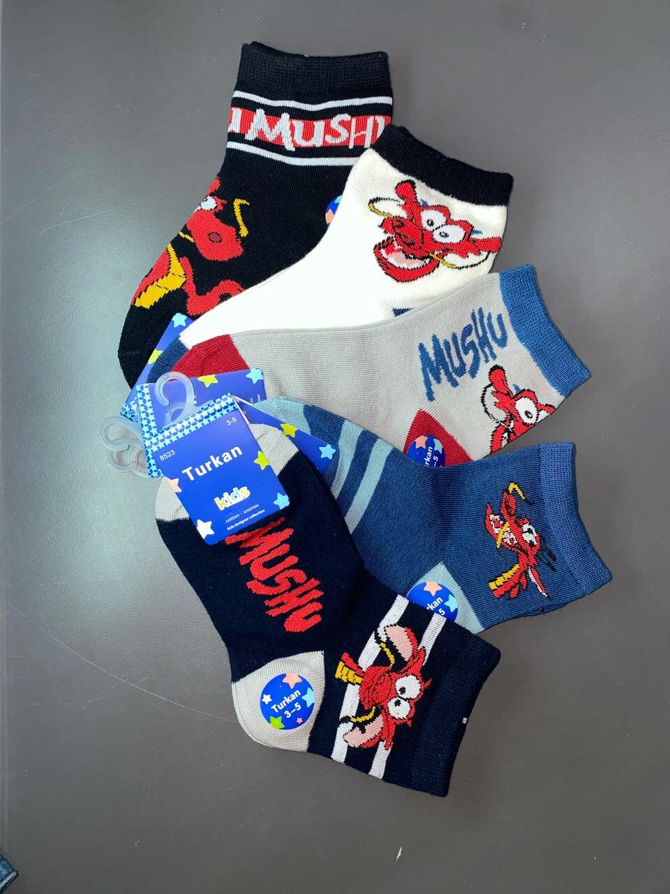 Носки для детей Turkan 6-8лет, размер 28/31, 5 пар в упаковке, принт мушу интересное: