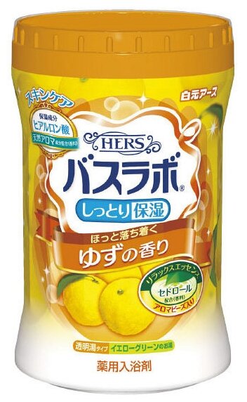 Купить Увлажняющая соль для ванны Hakugen Hers Bath Labo с восстанавливающим эффектом с гиалуроновой кислотой, с ароматом юдзу, банка 680 гр.