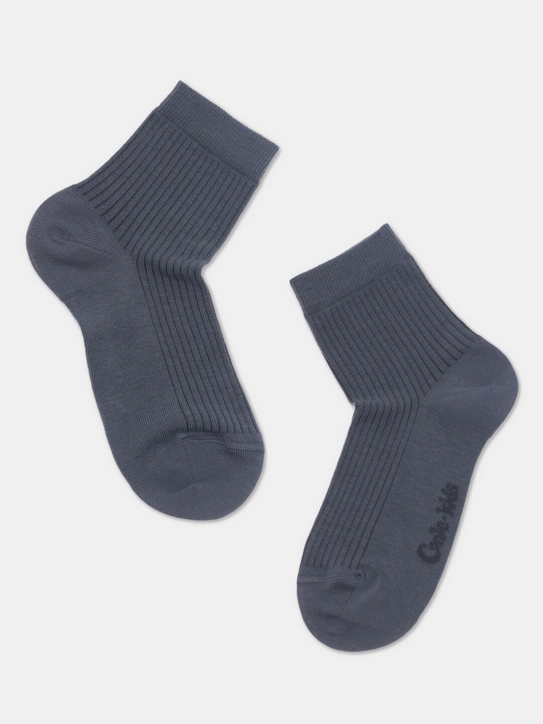 Носки детские классические из хлопка и LYCRA® Conte-kids Tip-Top, размер 22(33-35), рисунок 932- В рубчик, цвет Графит