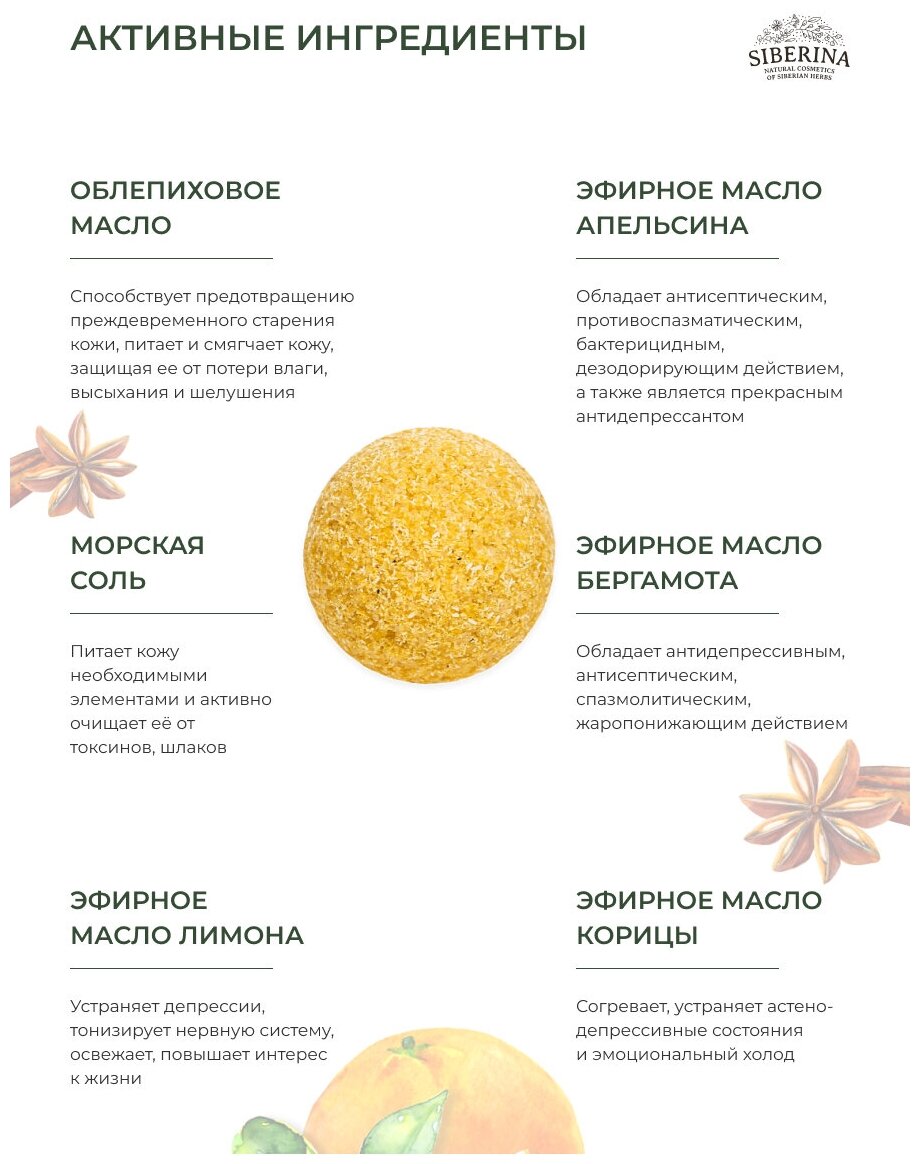 Бомбочка для ванны Siberina "Апельсин-корица" интересное: