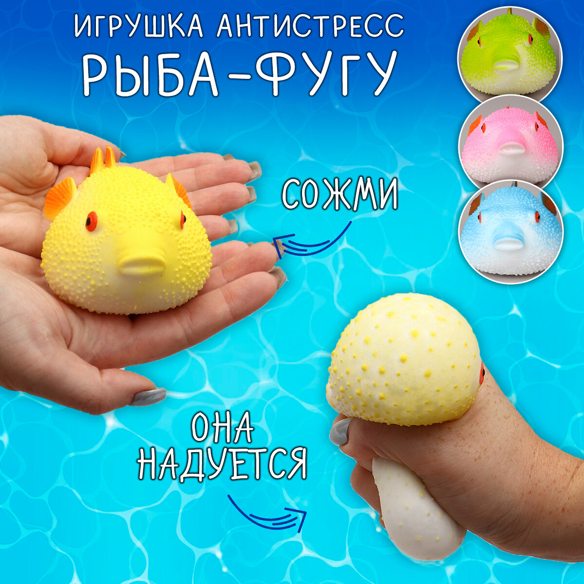 Игрушка антистресс Мялка Сквиш Рыба Фугу синяя Эврика подарок на новый год мальчику, девочке подарок 23 февраля, 8 марта