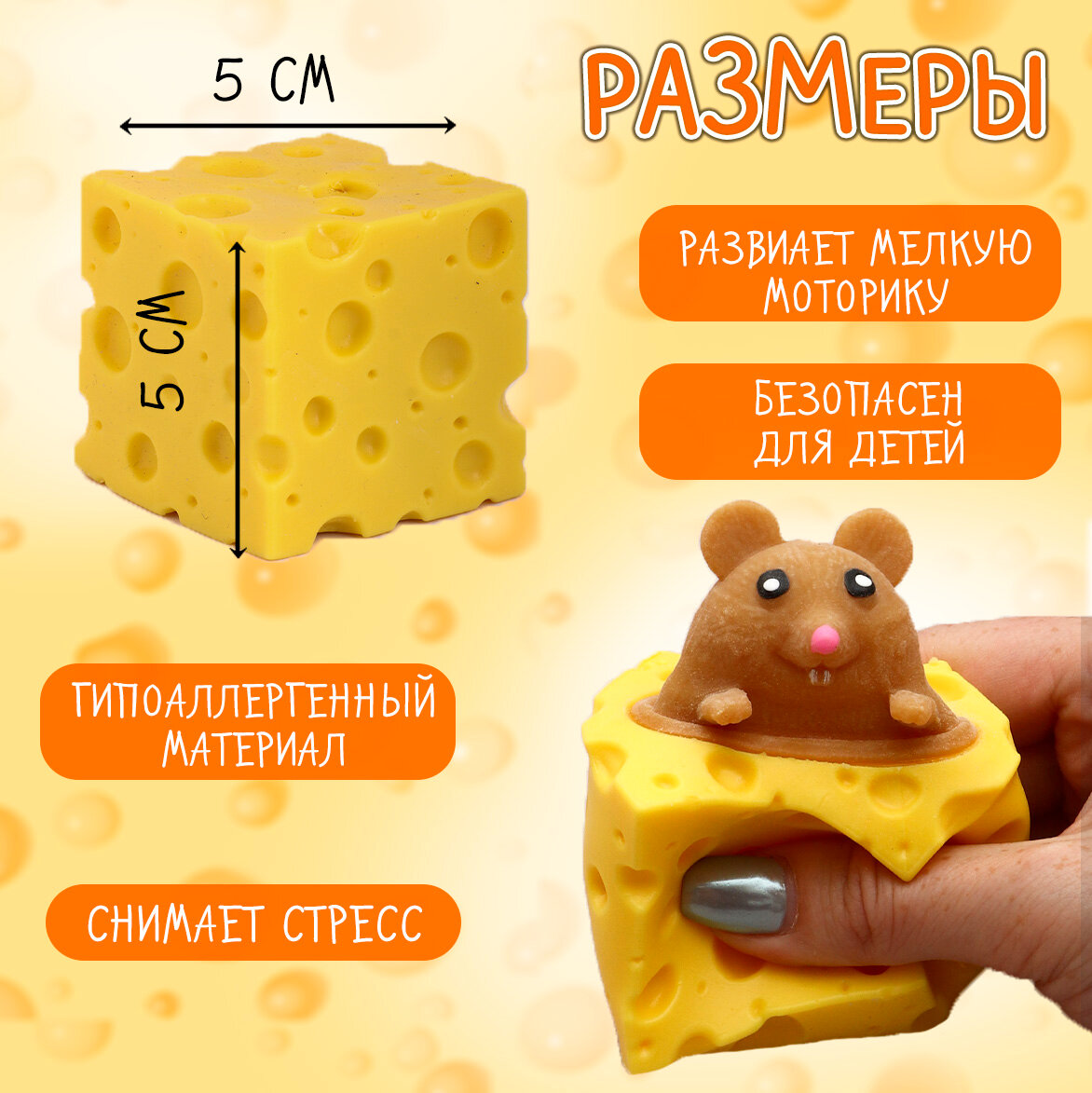 Купить Игрушка антистресс мялка Фуфлик Сыр с мышкой коричневой, сквиш Эврика подарок девочке, мальчику подарок 23 февраля, 8 марта