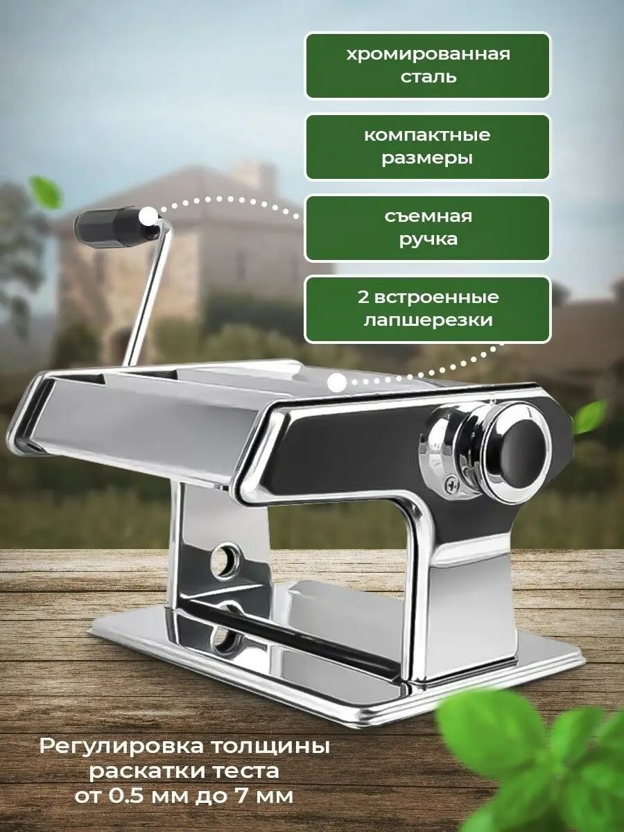 Доляна Лапшерезка с функцией раскатывания теста Доляна, 6 настроек толщины теста, ширина лапши 3 и 7 мм