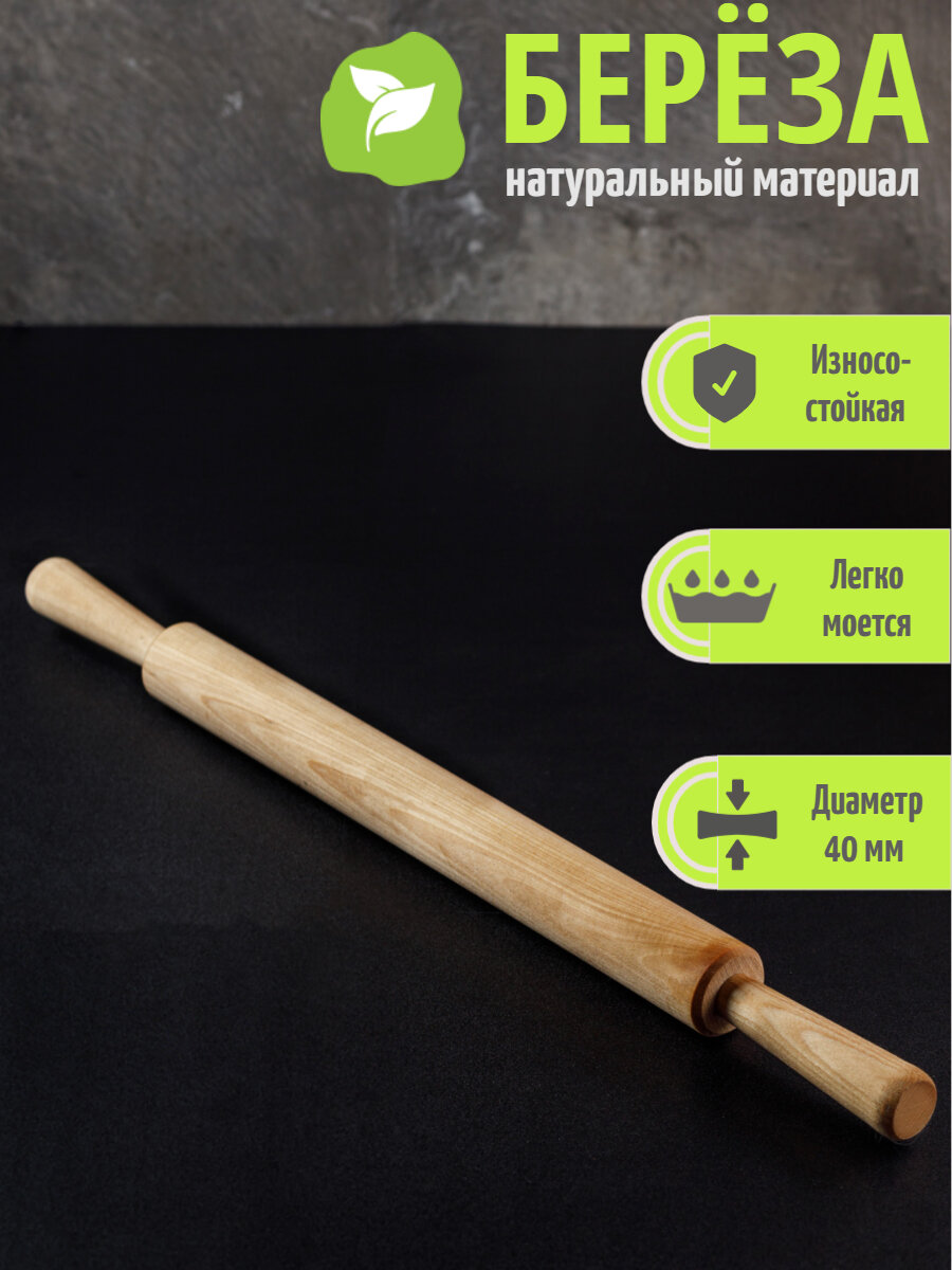 Скалка 250*40*420 мм круглая с ручками, береза